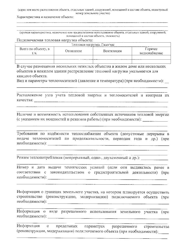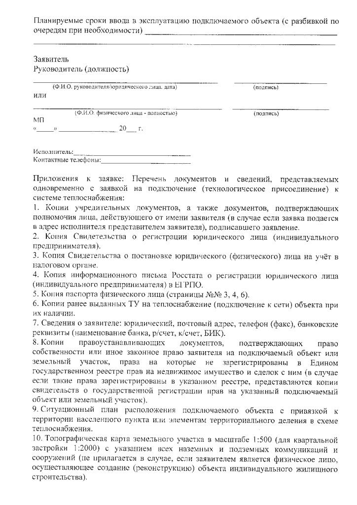 Форма заявки на подключение к системе теплоснабжения ОАО "Тетюшское ПТС" - вариант 2