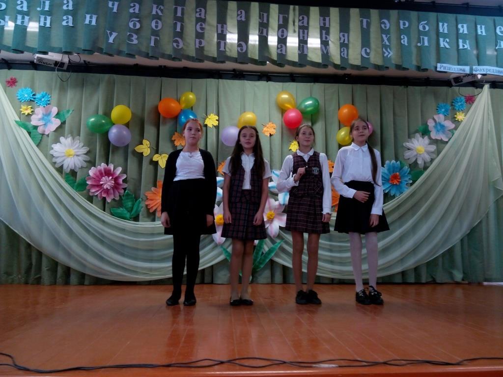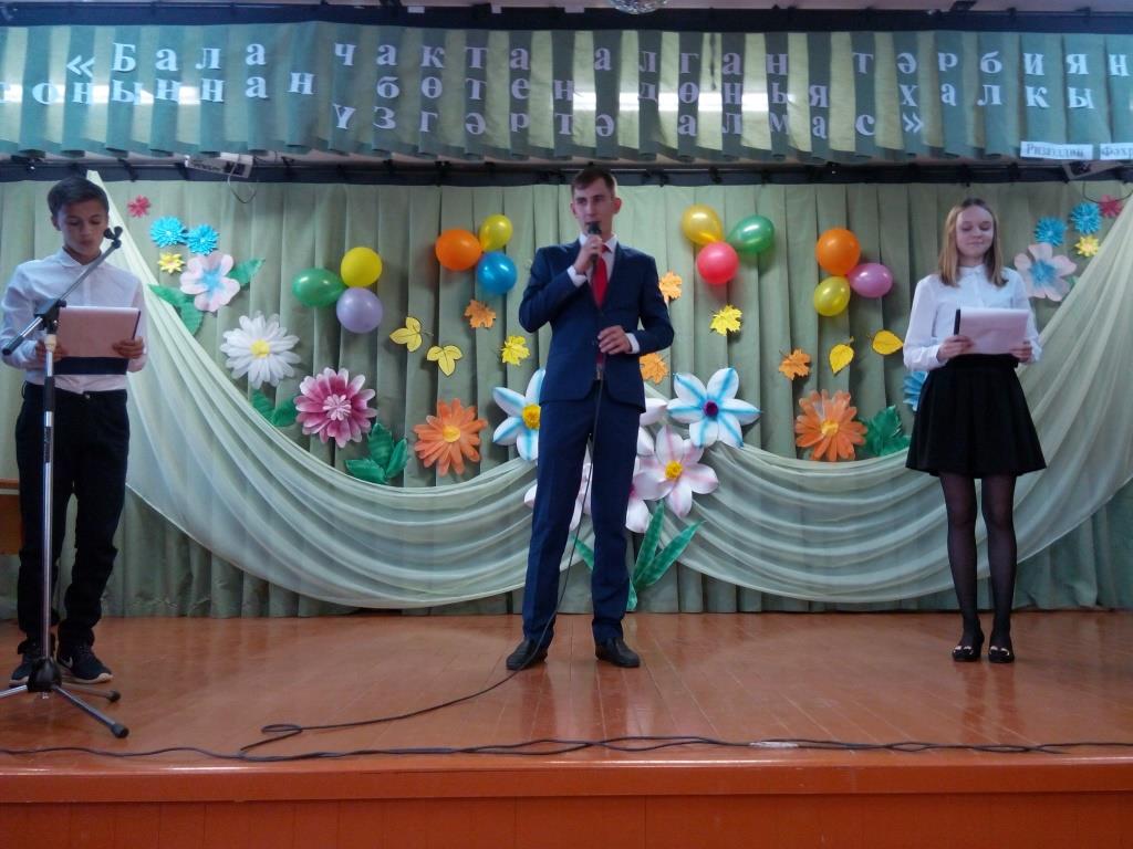 В этот день учащиеся нашей школы организовали праздничный концерт для учителей. Со сцены звучали слова поздравления и признательности. С приветственным словом и поздравлением выступил директор школы Ильнур Назымович Замалтдинов. Учащиеся подготовили интересные номера – рассказывали стихотворения, пели песни на русском и татарском языке, показывали сценки на школьную тематику, ставили зажигательные танцы. Также учащиеся подарили учителям цветы, изготовленные своими руками. В этот день ни один учитель не остался без внимания.