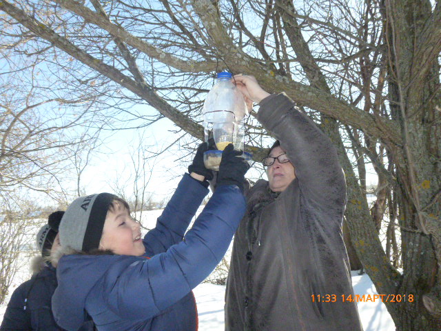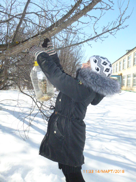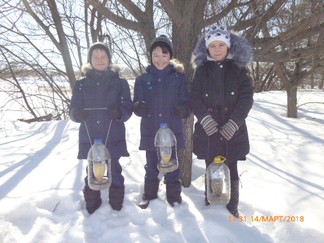 14 марта, в рамках акции "Весенняя неделя добра - эстафета добрых дел", директор СДК Люция Халиуллова и библиотекарь Гузаль Шайхиева вместе с учащимися развесили кормушки для птиц. Артур и Тимур сделали кормушки дома, а Рузиля сделала кормушку на занятии кружка "Умелые ручки". Когда к кормушке подлетели синицы, дети обрадовались, значит они потрудились не зря.