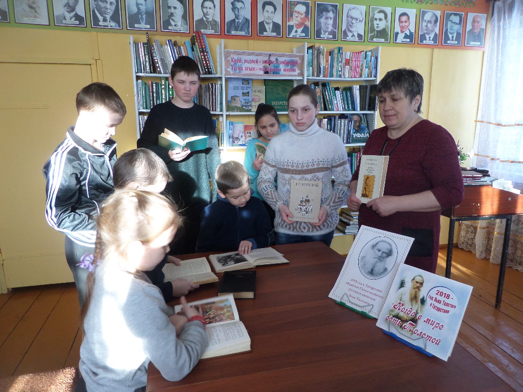 Литературный час «Когда в мире есть Толстой» провела ведущий библиотекарь Байрашевской поселенческой библиотеки Т. Юсупова для учащихся школы.