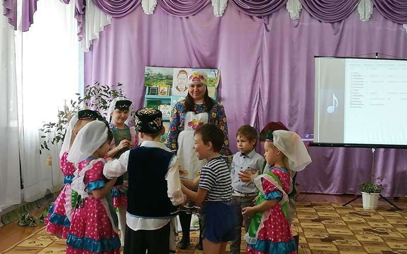 Современные требования организации образовательного процесса предполагают участие родителей обучающихся как непосредственных участников данного процесса. В рамках подготовки к семинару родителями воспитанников под руководством педагогов детского сада было подготовлено развлечение «Путешествие по произведениям Габдуллы Тукая», которое стало итогом проведённой недели, посвящённой Дню родного языка. Воспитанники детского сада провели с гостями игру «Поле чудес», а также вместе с родителями подготовили выставку рисунков и поделок по сказкам Тукая.