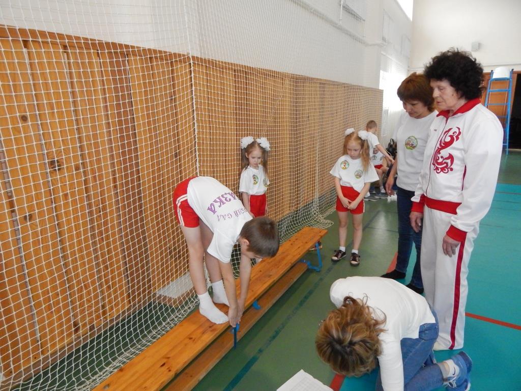 24 апреля в СОК «Барс» прошли спортивные состязания – Фестиваль ГТО среди воспитанников подготовительных групп детских садов. Соревнования проходили по следующим видам испытаний: челночный бег, прыжки в длину с места, наклон вперед из положения стоя с прямыми ногами, метание теннисного мяча в обруч, полоса препятствий. Перед прохождением всех запланированных состязаний 6 мальчиков и 12 девочек выступили со спортивным танцем «Россия». Наша команда «Смельчаки» в составе 5 человек с достоинством справились со всеми видами испытаний, заняв первое место. Поздравляем наших дошколят с победой!