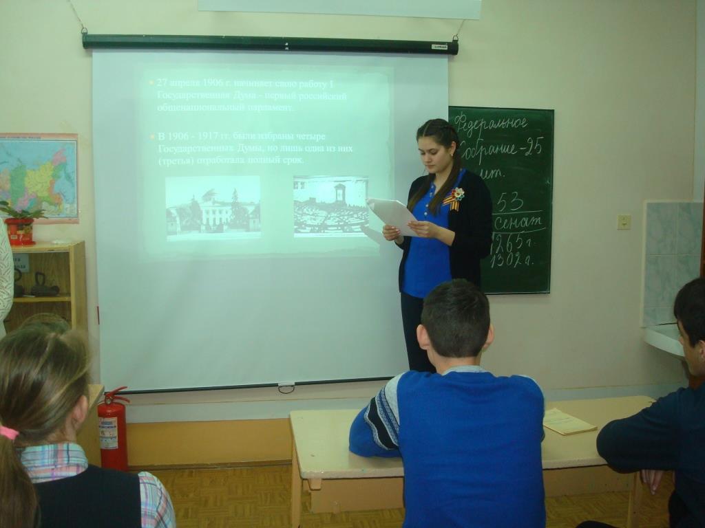Ко Дню российского парламентаризма в МБОУ «Урюмская СОШ» проведен единый урок. На уроке вспомнили историю российского парламентаризма, начиная с Боярской Думы Ивана III до Федерального Собрания РФ. Особое внимание уделили созыву Государственной Думы 1906 года. Посмотрели фильм "Первая Дума". Вспомнили полномочия ГД и СФ.