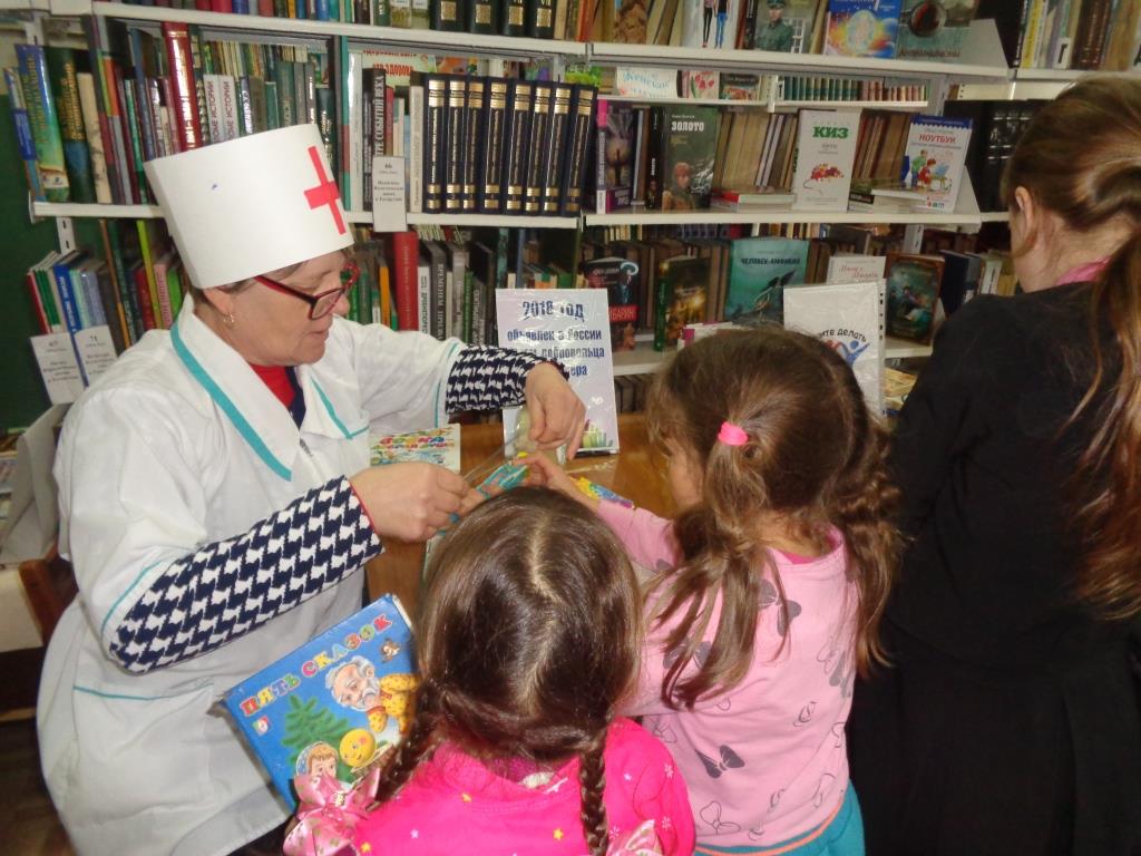 Электронная презентация расширила сведения ребят о благотворительности в России. Шапокляк пообещала исправиться и даже согласилась стать библиотечным волонтером. Капельку веселья внесла в программу любимая шуточная игра старушки «Кошелек». Затем библиотекарь Галина Авдеева сделала обзор книжной выставки «От милосердия в книгах к неравнодушию в жизни». Пополнить копилку добрых дел смогли библиотечные волонтеры, навестив «Книжкину больницу», где вместе с доктором Айболитом отремонтировали книги.