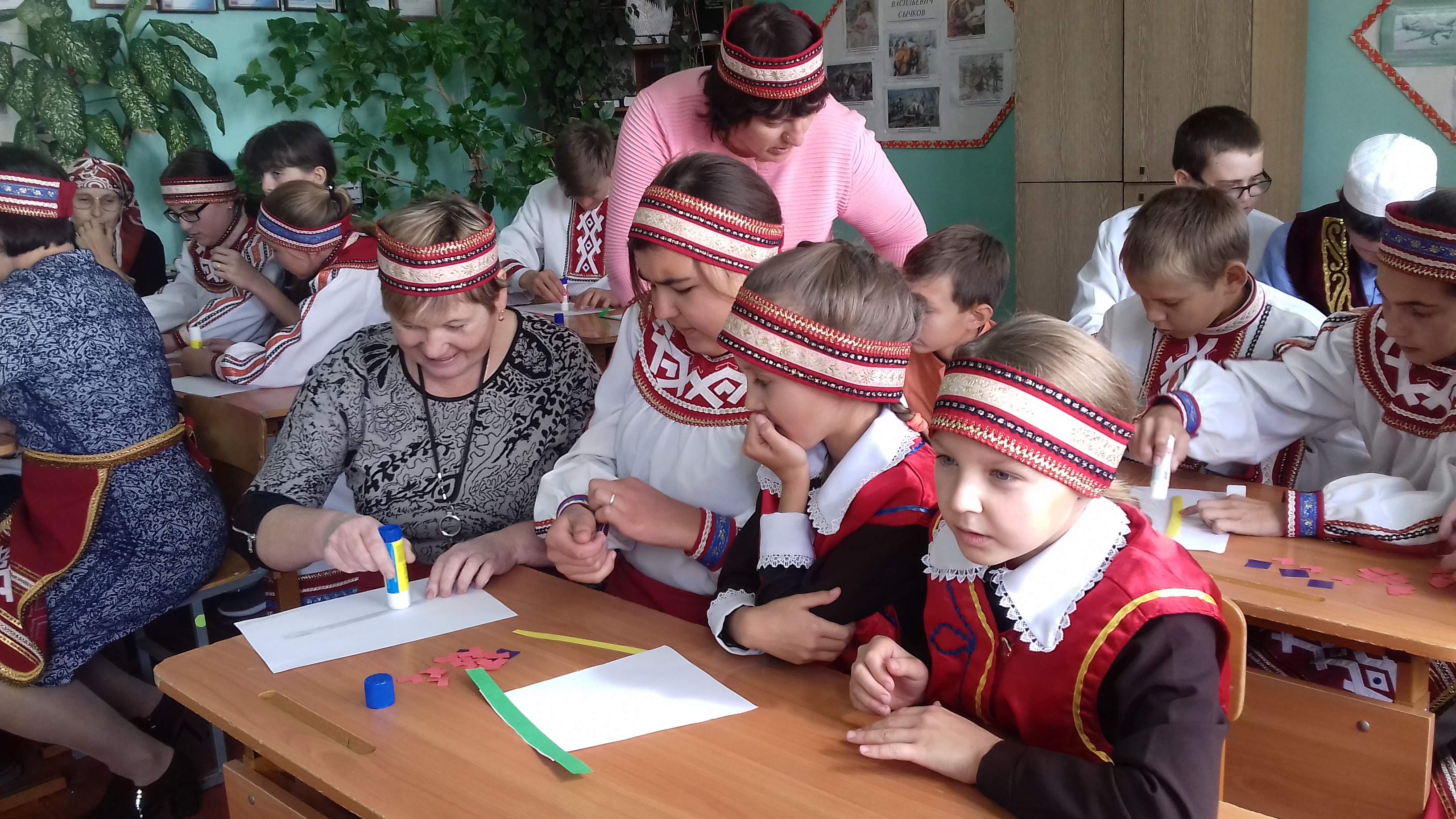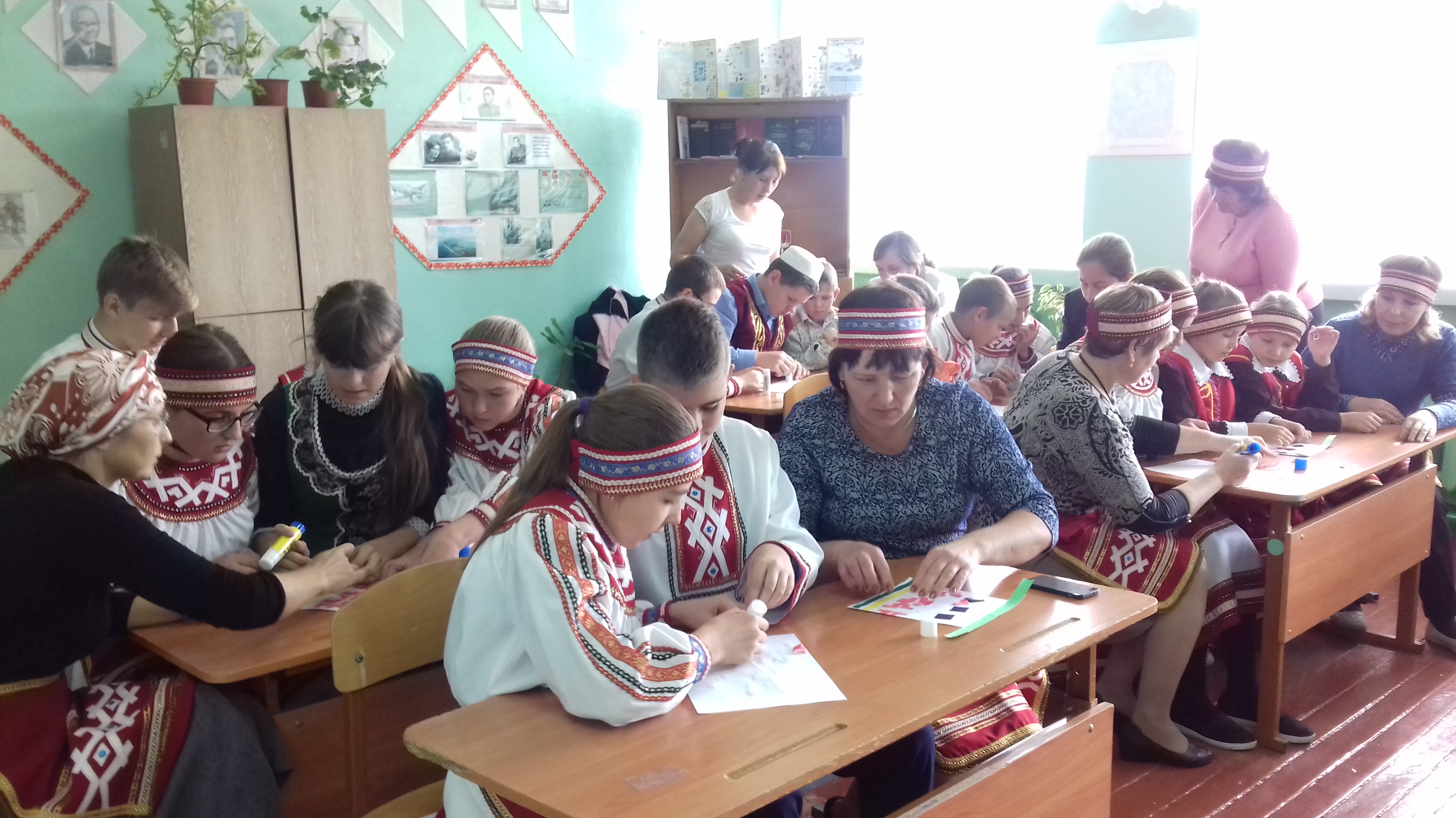 В этот день в МБОУ «Киртелинская СОШ» все учащиеся и учителя в национальных костюмах приняли участие в беседе о костюмах народов проживающих в нашем районе. А также совместно с Казаевой М.П. на мастер-классе изготовили мордовский передник «Сапоня». Получили много положительных эмоций.