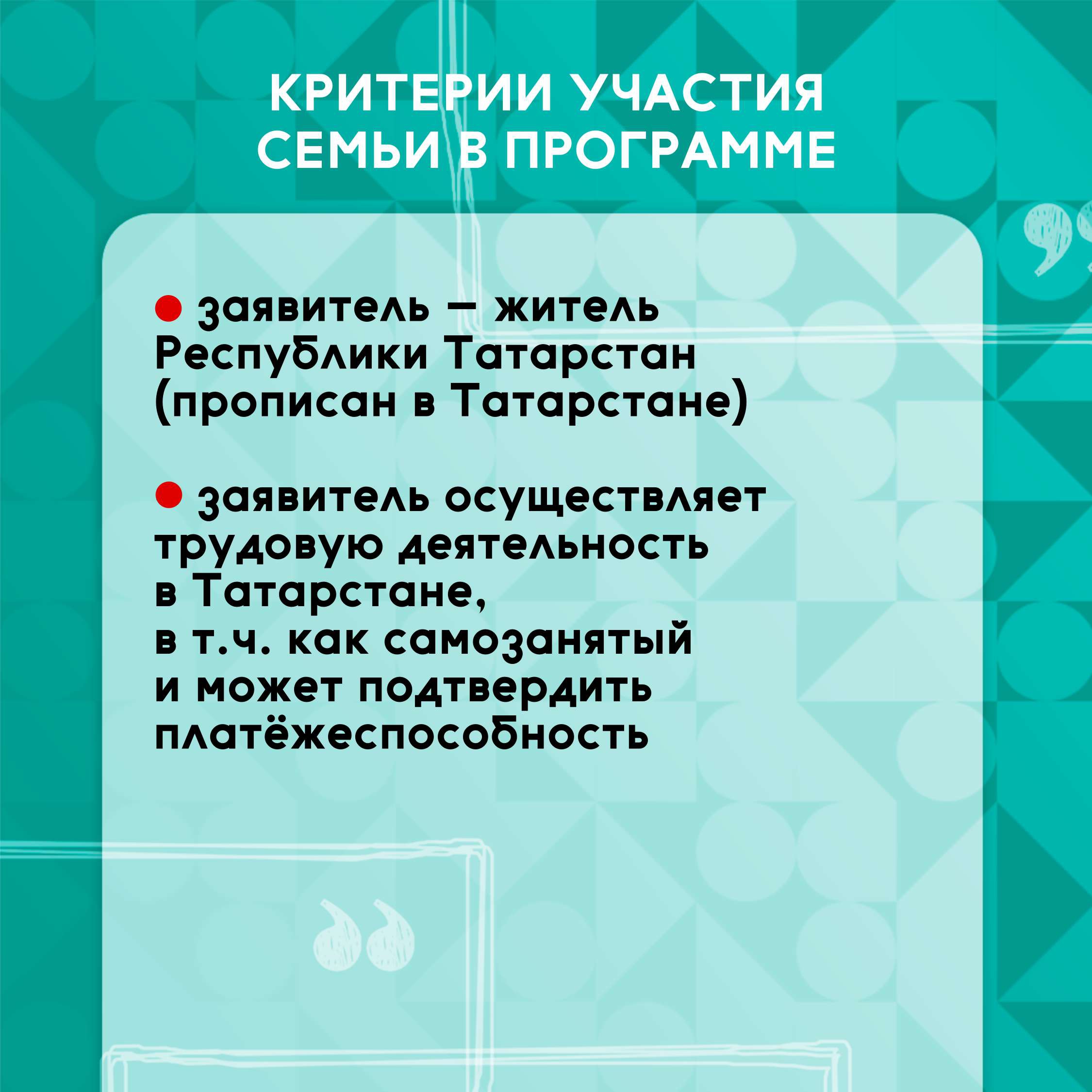 Основные критерии участия в программе соципотеки «Молодая семья» для всех категорий молодых семей Татарстана: