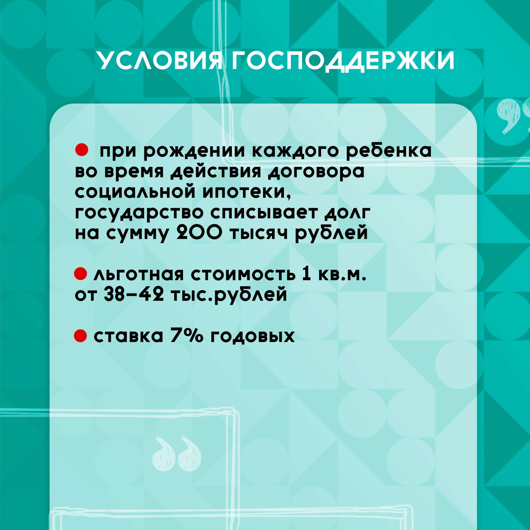 Кроме того, за рождение каждого ребенка во время действия договора социальной ипотеки, государство списывает из стоимости квартиры сумму 200 тысяч рублей.