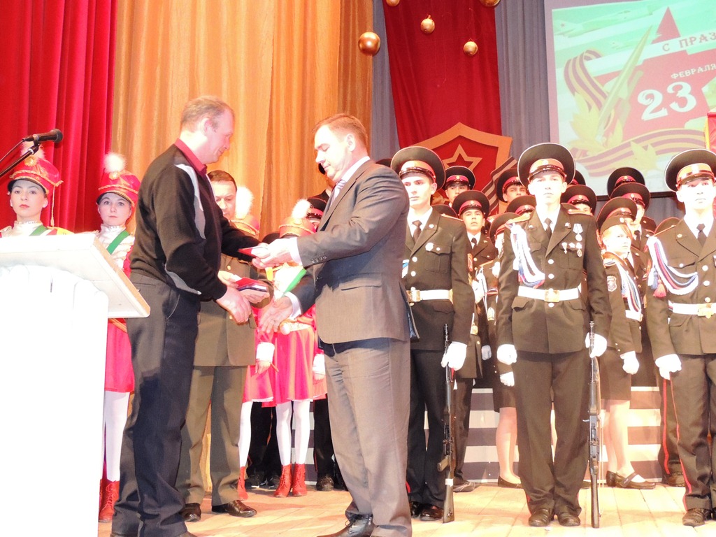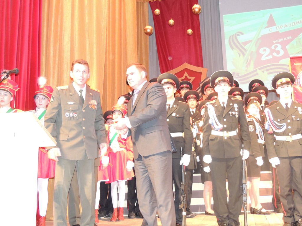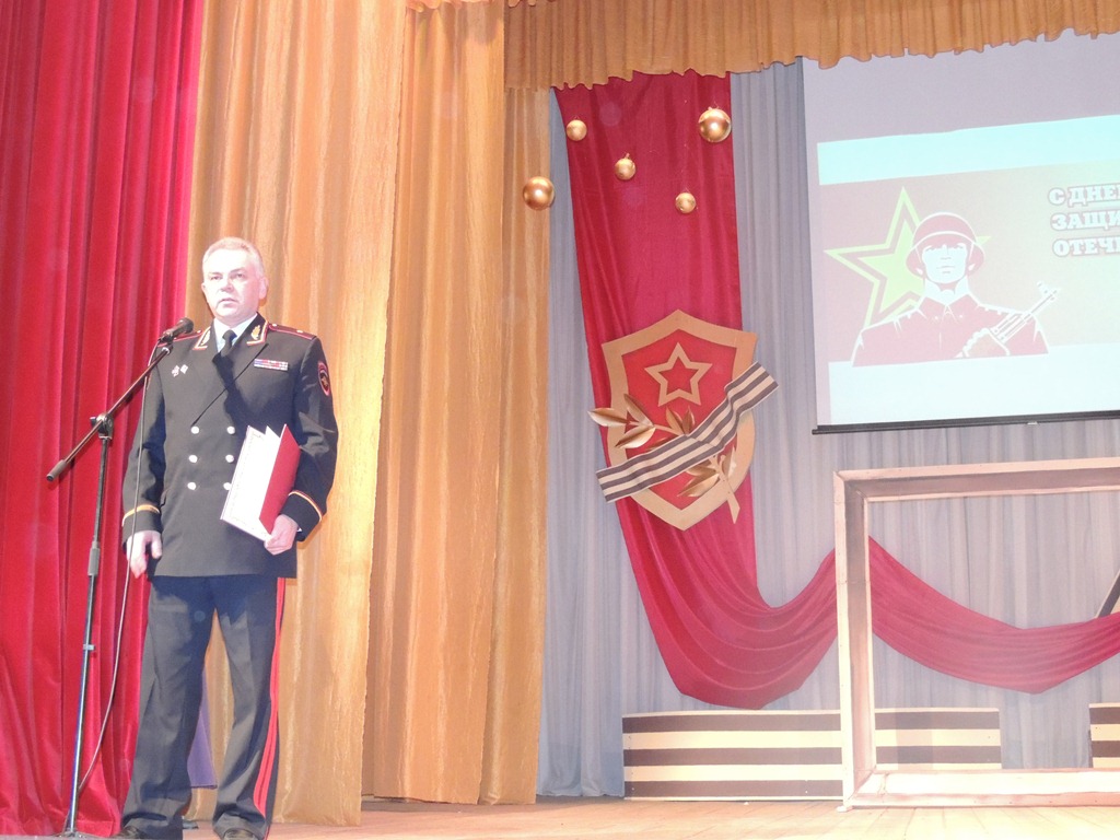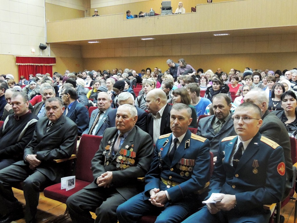 Глава района В.С. Чершинцев поздравил присутствующих с Днем защитника Отечества :"В этот день в каждой семье, в каждом доме вспоминают героический подвиг наших отцов и дедов, склоняют голову перед светлой памятью тех, кто не пришел домой с полей сражений. Их патриотизм, отвага и мужество - яркий пример для нашего подрастающего поколения. От имени всех жителей района хочется выразить слова глубокого уважения и признательности всем тем, кто ценой жизни боролся за независимость своей Отчизны..."