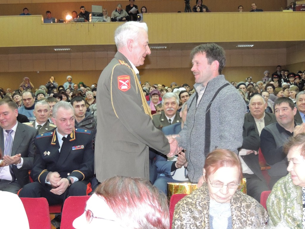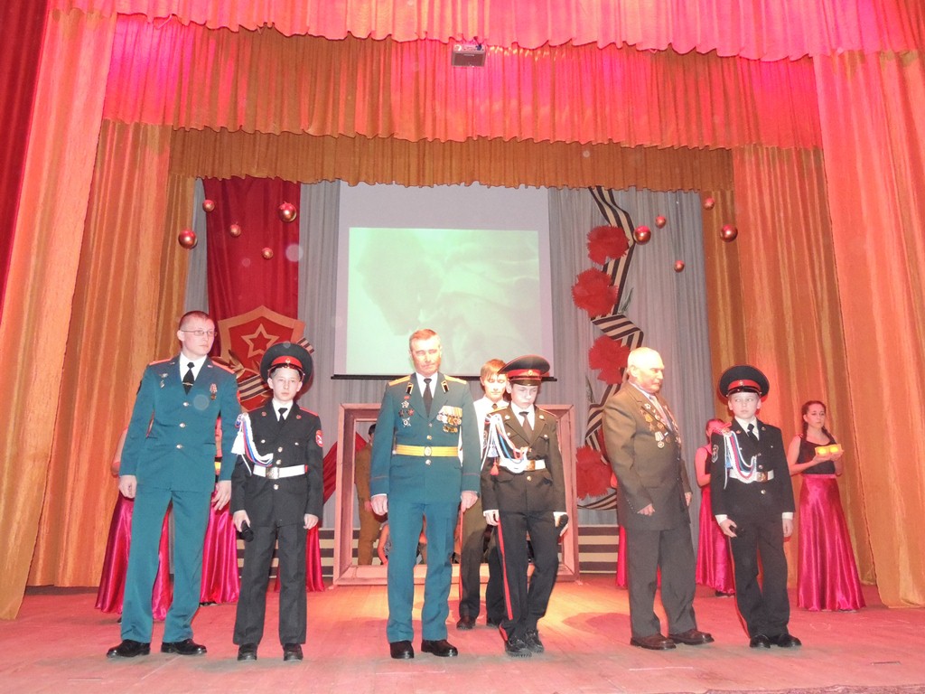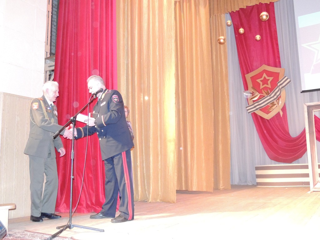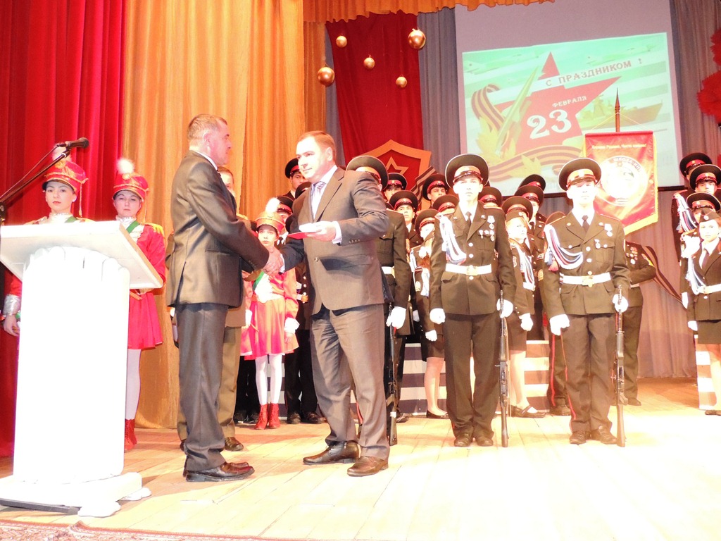 Глава района В.С. Чершинцев поздравил присутствующих с Днем защитника Отечества :"В этот день в каждой семье, в каждом доме вспоминают героический подвиг наших отцов и дедов, склоняют голову перед светлой памятью тех, кто не пришел домой с полей сражений. Их патриотизм, отвага и мужество - яркий пример для нашего подрастающего поколения. От имени всех жителей района хочется выразить слова глубокого уважения и признательности всем тем, кто ценой жизни боролся за независимость своей Отчизны..."