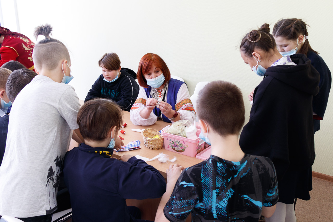 22 апреля в Тетюшском районном Доме культуры для учащихся Тетюшской общеобразовательной школы №2 работники культуры провели тематический час «Народные промыслы», в рамках акции «Народная культура для детей и подростков». В ходе мероприятия дети познакомились с русскими народными промыслами, изделиями декоративно - прикладного искусства и их отличительными чертами. Мастерицы нашего района Татьяна Ивановна Демина (худ.рук. Пр.Кашкинского сельского Дома культуры) и Галина Ивановна Рыжова (директор Людоговского сельского Дома культуры) провели мастер - класс по изготовлению куклы – оберег и коврика из ярких лоскутных нитей.