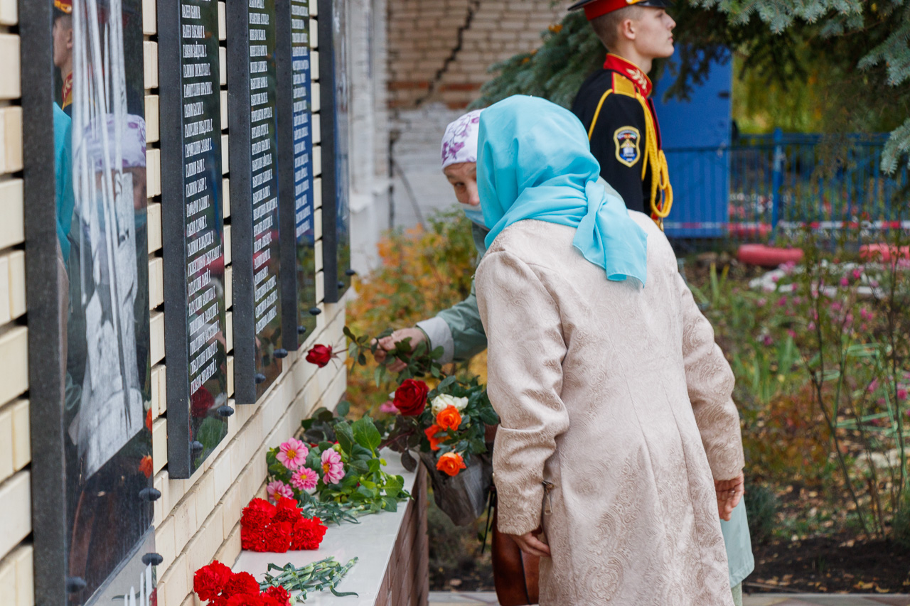 Далее наступил торжественный момент. Гости открыли мемориальный комплекс после чего состоялось возложение гирлянды и цветов к монументу.