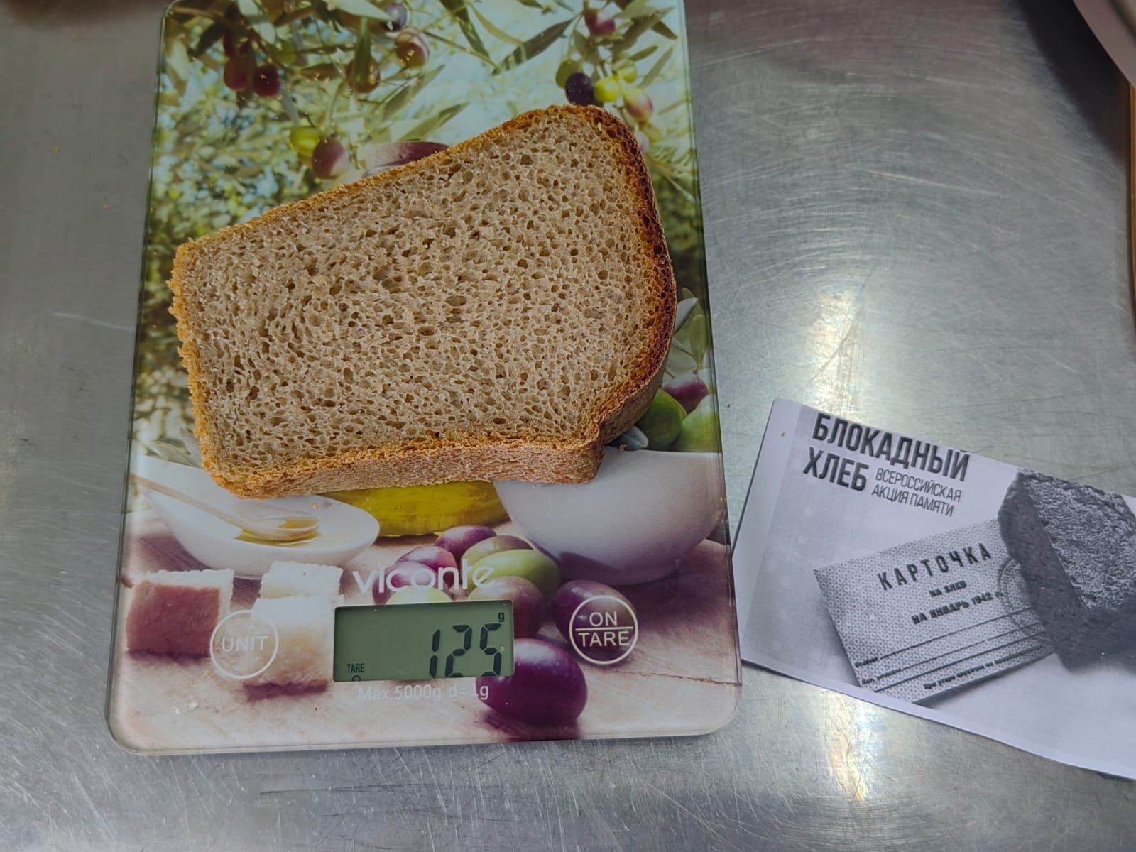 В рамках акции прошел урок памяти «Блокадный хлеб», на котором учащимся рассказали о блокаде Ленинграда, поделились с ними важными историческими фактами, связанными с блокадным хлебом, жизнью блокадников. Актив школы и юнармейцы выдали школьникам и учителям карточки, по которым в столовой выдавали те, заветные 125 грамм хлеба.