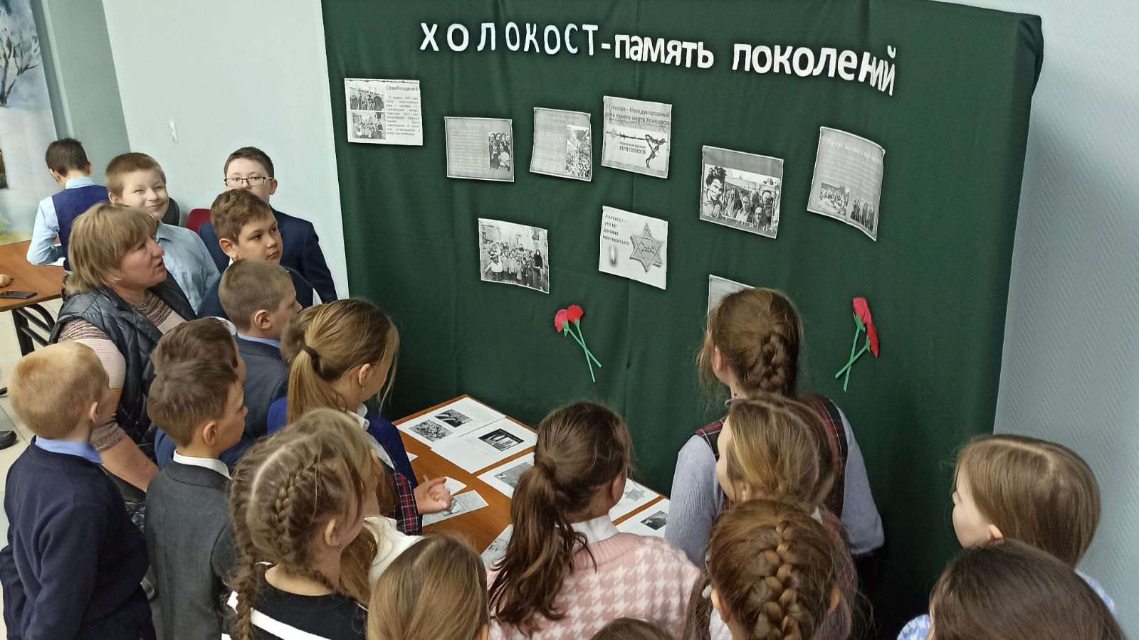 Ребята на подготовленном стенде получили информацию о страшных событиях, которые происходили во время Великой Отечественной войны. Они познакомились с историей Холокоста, узнали о том, какое место занимает тема концлагерей в истории России и Великой Отечественной войне. Дети увидели весь ужас испытаний взрослыми и детьми в лагерях Холокост, Освенцим, Бухенвальд. Видя измождённые, изувеченные тела невинных детей и взрослых, ребята сочувствовали и сопереживали им. Многие из них могли даже сами рассказать о тех ужасных временах.