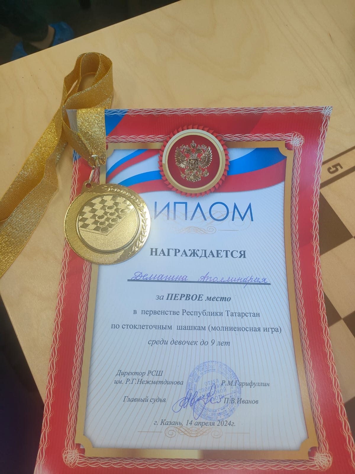 Первое место в Первенстве Республики татарстан по стоклеточным шашкам