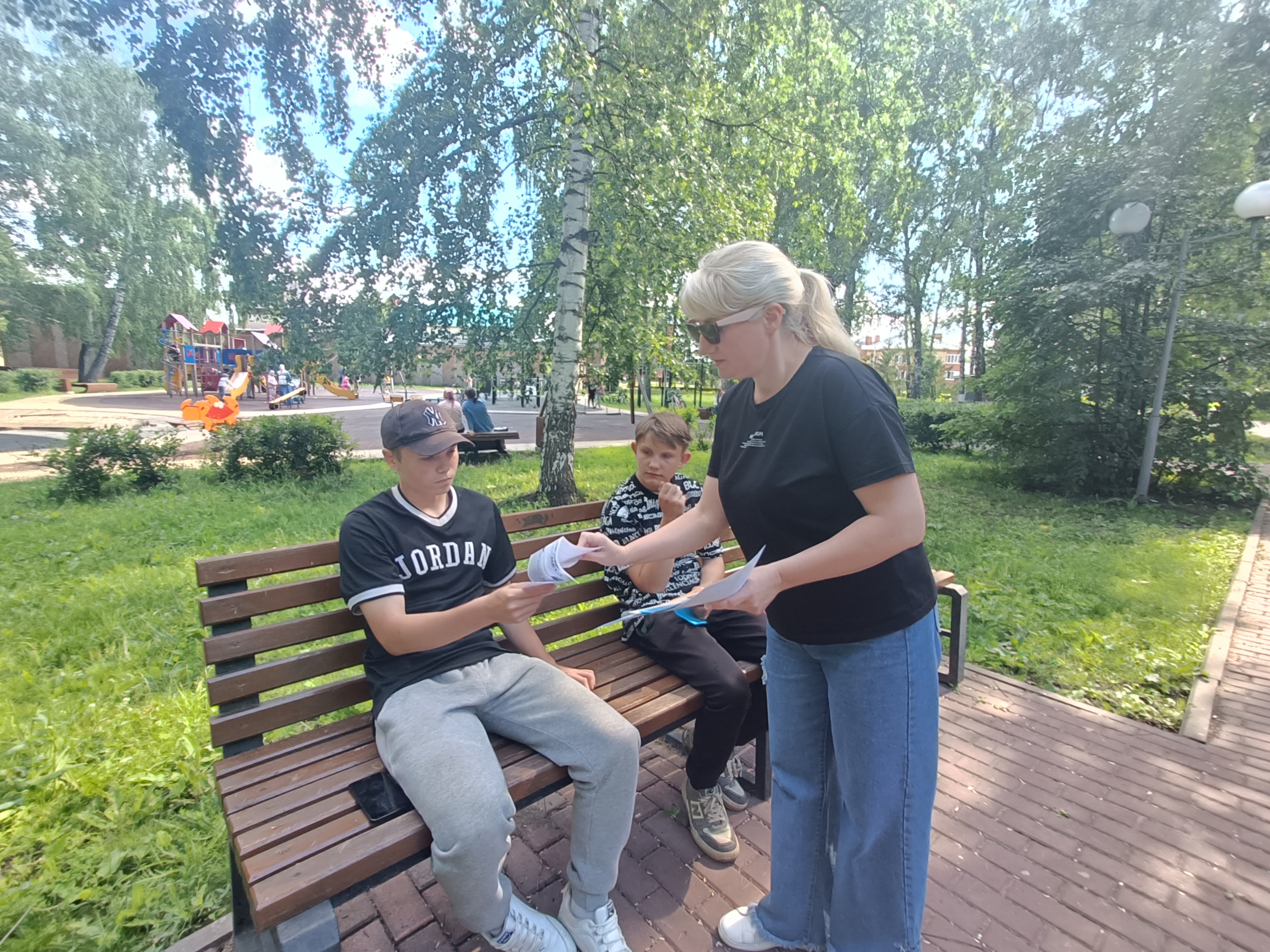 Подросткам, отдыхающим в парке, были вручены информационные листы, содержащие материалы о вреде употребления наркотиков, где рассмотрены вопросы, почему люди начинают употреблять наркотики, в чем заключается коварство наркотиков, как защититься от вовлечения в наркоманию.