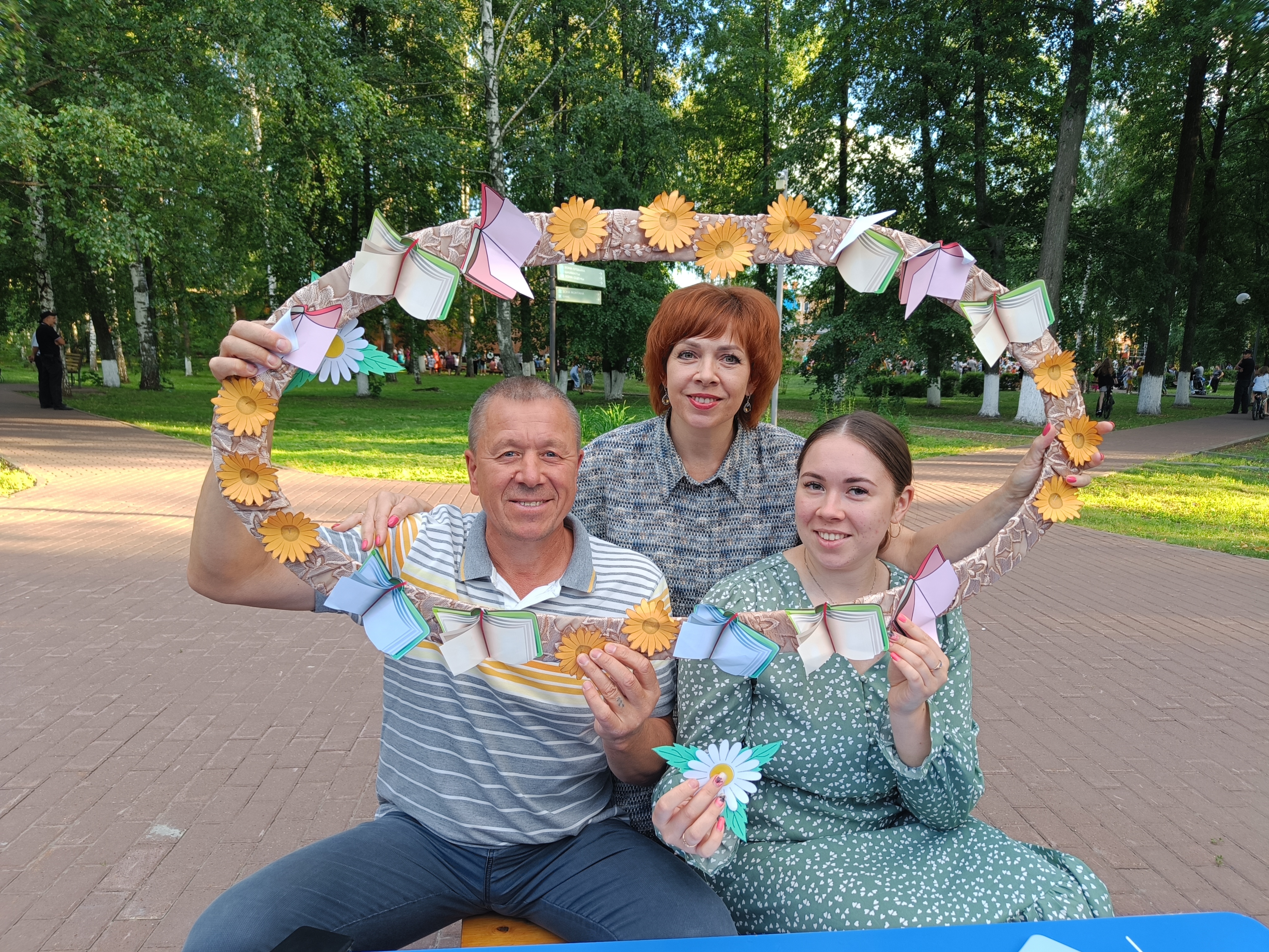 8 июля, в рамках празднования Всероссийского дня семьи, любви и верности, сотрудниками Детской библиотеки в Центральном парке была проведена игровая программа «Веселая семейка», в ходе которой ребята и родители приняли участие в различных конкурсах, восстановили пословицы о семье. Затем на мастер-классе изготовили символ праздника - ромашку. Вниманию участников мероприятия была представлена книжная выставка «Семья - как много в этом слове».