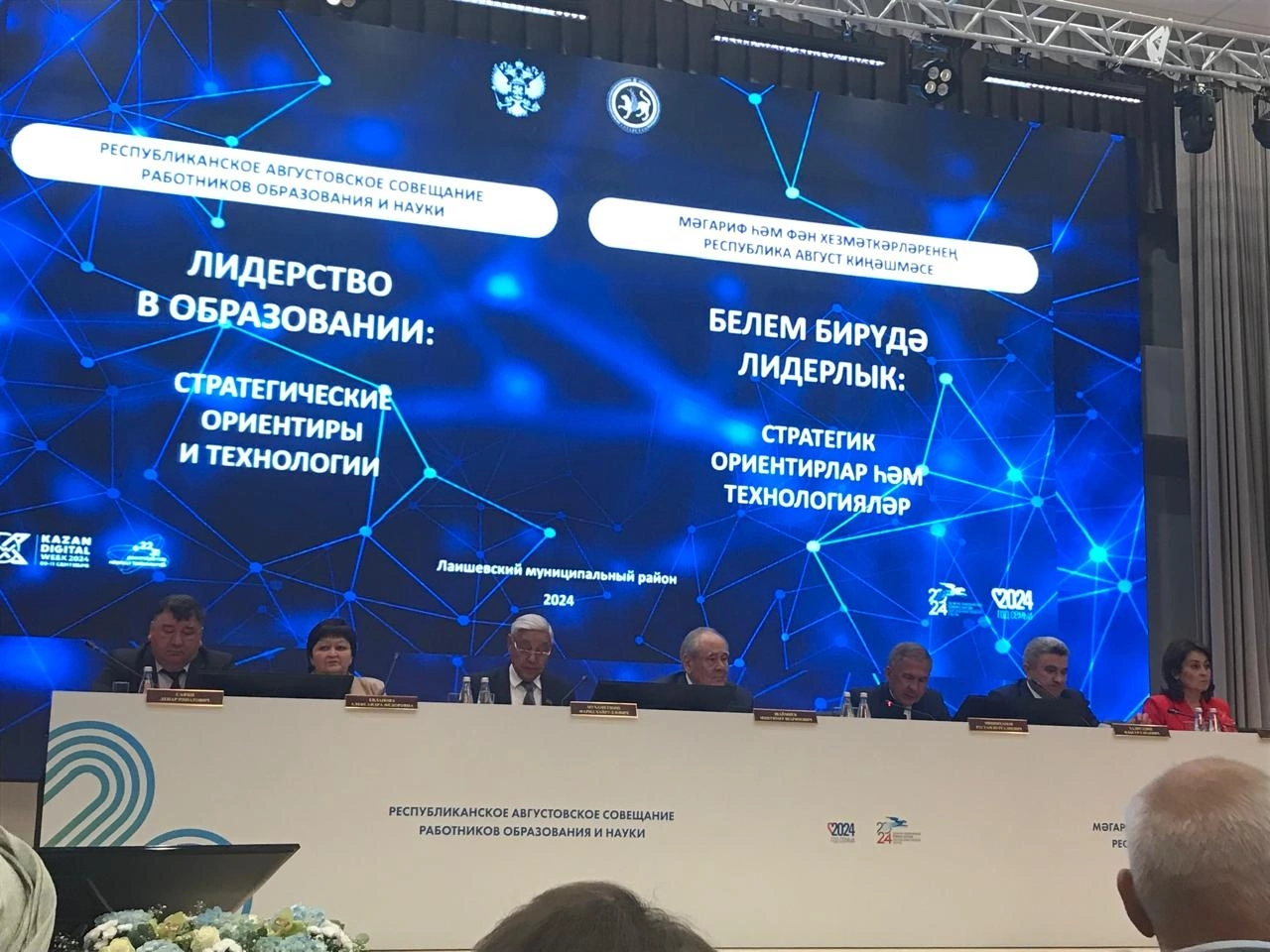 15 августа в селе Усады Лаишевского района в новом многопрофильном лицее «Инноватика» прошло пленарное заседание республиканского августовского совещания работников образования и науки с участием Раиса Республики Татарстан Рустама Минниханова. Основная тема совещания – «Лидерство в образовании: стратегические ориентиры и технологии». В работе совещания приняли участие заместитель главы Тетюшского муниципального района Курков Евгений Гаврилович, начальник МКУ "Отдел образования Исполнительного комитета ТМР РТ" Кирилина Гульнара Феридовна.
