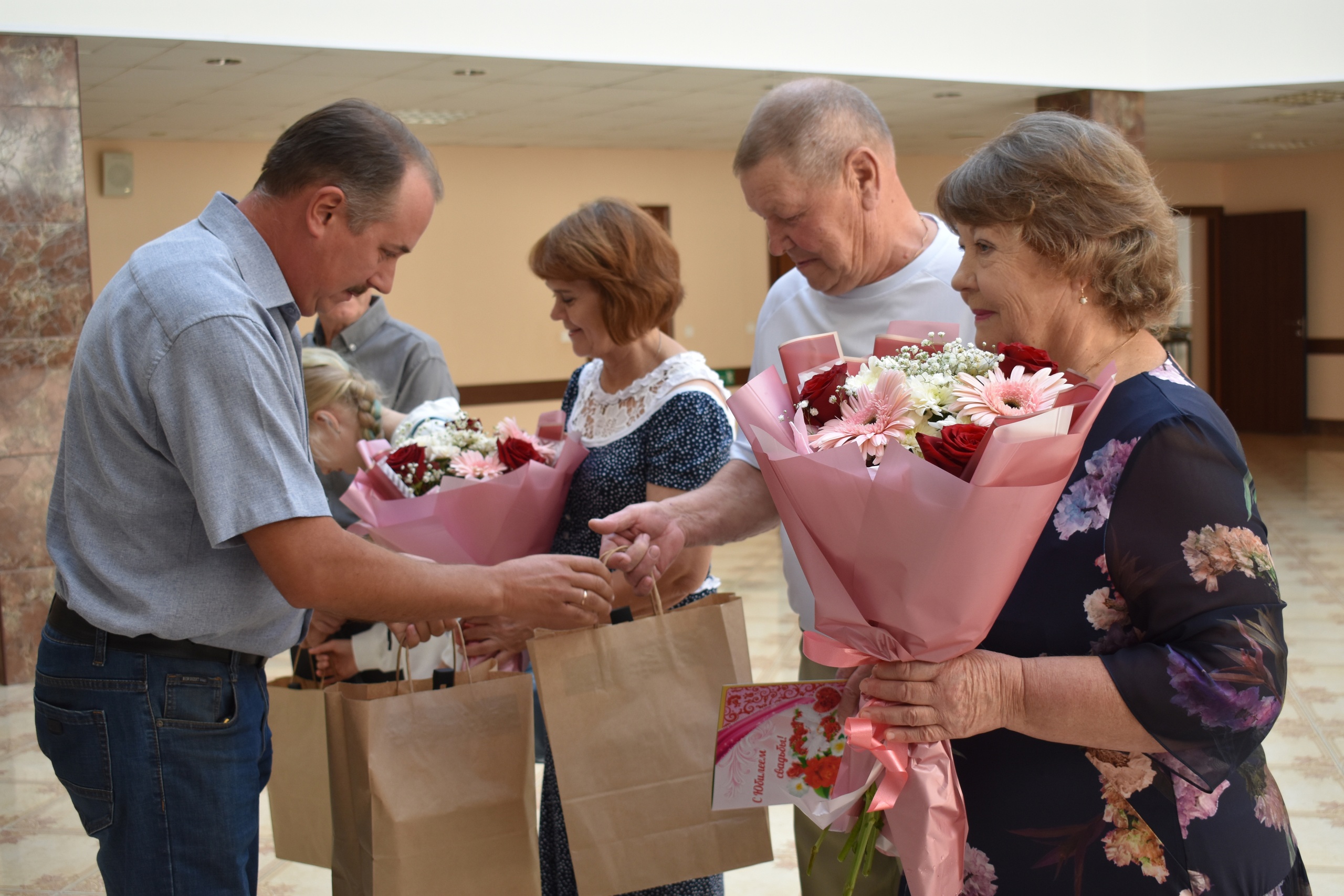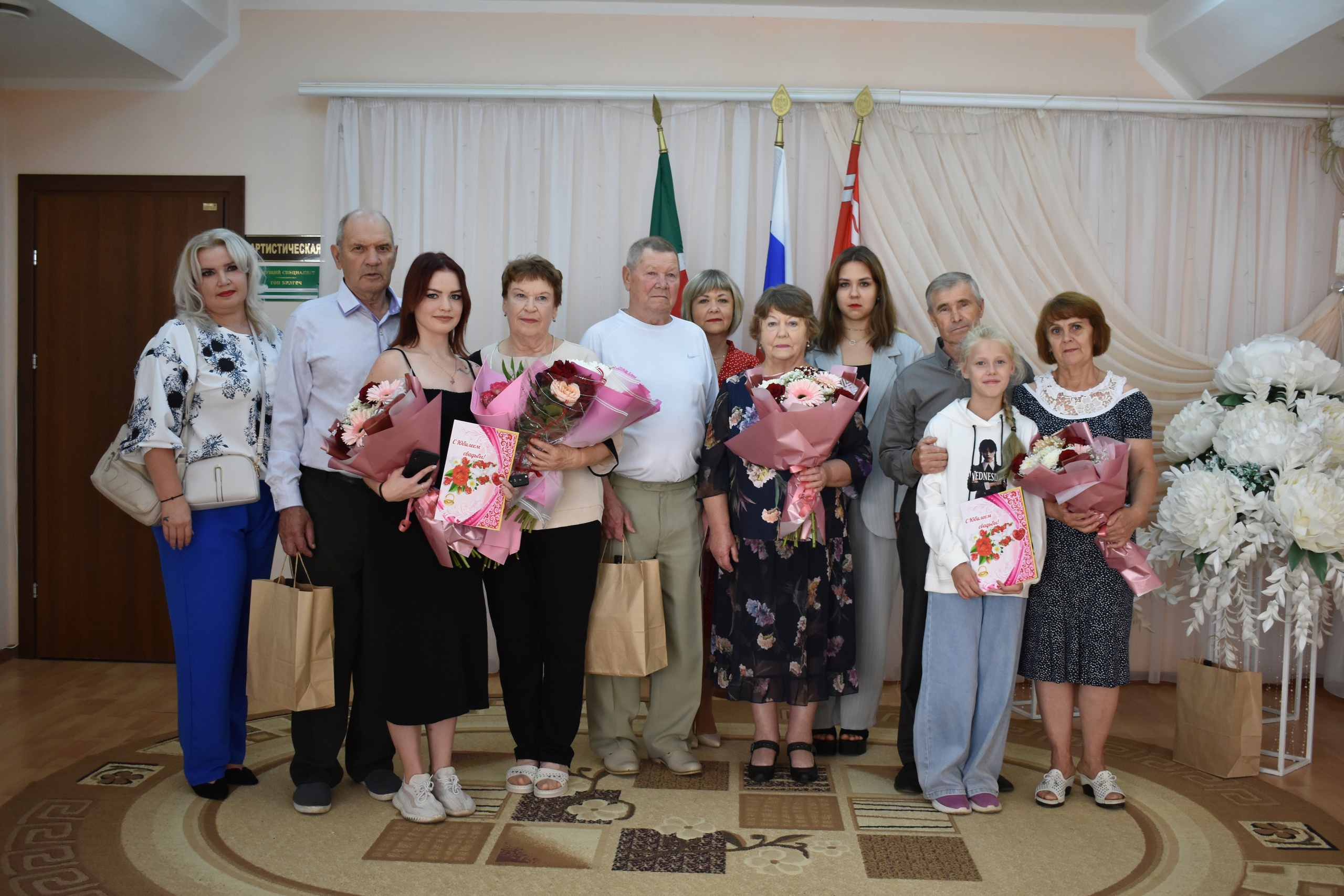 В день юбилея супруги были гостями в отделе ЗАГС. Со значимым событием их поздравляли дети, внуки, а также руководитель Тетюшского городского исполкома А.А.Никоноров и начальник отдела ЗАГС Л.М.Дианова. Юбилярам вручили поздравительные открытки от имени Главы района Р.Х. Сафиуллова и памятные сувениры с пожеланием активного долголетия, благополучия, теплоты и внимания родных и близких людей. Поздравляем!