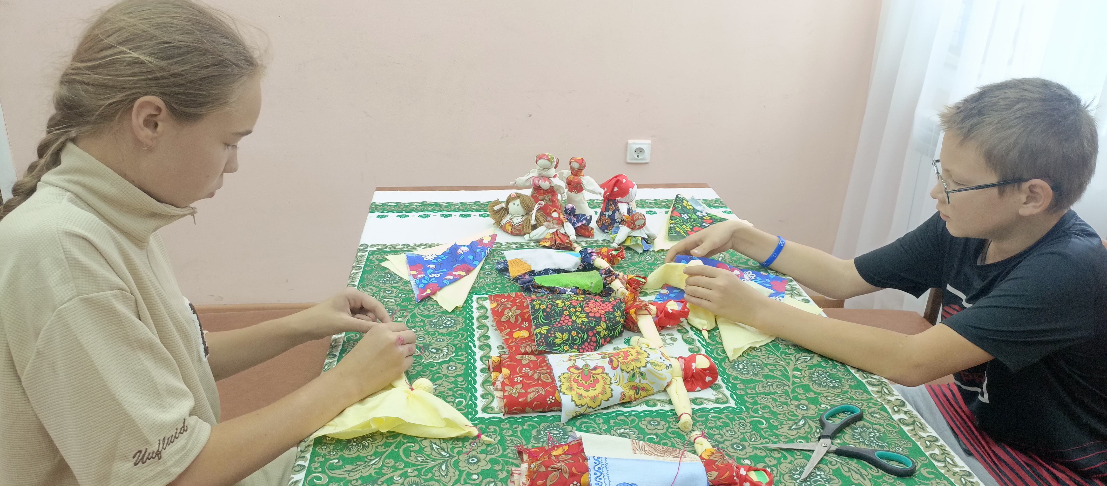 Ребята заинтересовались услышанной информацией о символике славянского народа, о значении кукол на Руси, ведь в куклы не только играли, но и проводили обряды, они были на свадьбах и при рождении младенцев, а кукла Берегиня была защитным талисманом для сохранения тепла домашнего очага и здоровья членов семьи. Ученицы с большим интересом изготавливали свои куклы-обереги, помогая друг друга, вкладывая в свои изделия частичку души, понимая, что их куклы олицетворяют нацию, семью, любовь поколений.