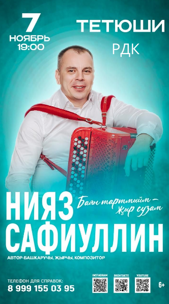 7 ноября в 19.00 ч. в Тетюшском районном Доме культуры состоится сольный концерт автора-исполнителя, певца, композитора Нияза Сафиуллина «Баян тартмыйм – җыр сузам».