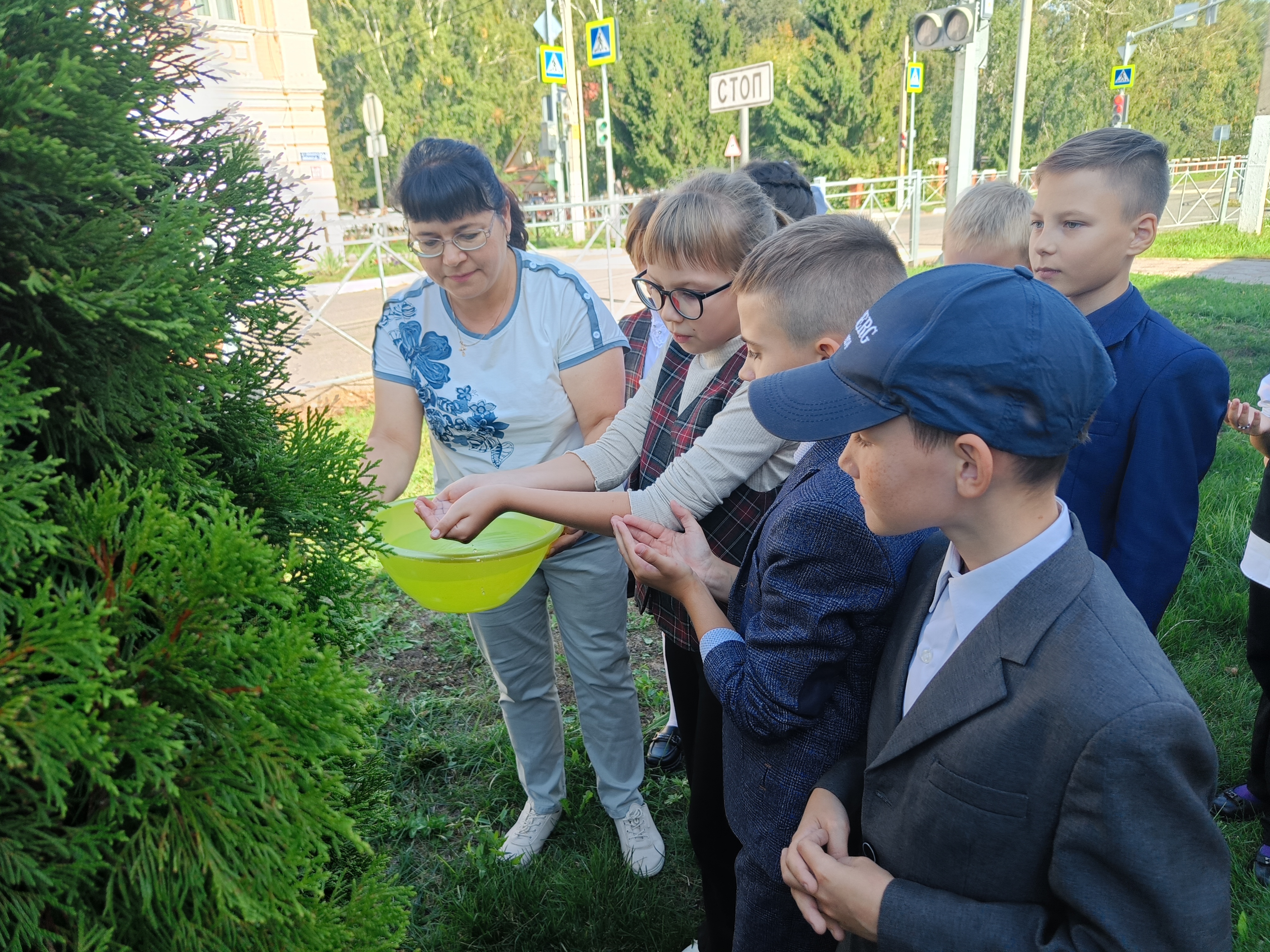 Сотрудники библиотеки рассказали школьникам о событиях тех трагических дней, когда боевики захватили школу, взяв в заложники свыше тысячи человек. И находясь в заточении, дети целых три дня не могли выпить и капли воды. В память о жертвах Беслана ребята, набрав в ладони воду, полили деревья, символически напоив всех тех, кого уже нет рядом с нами.