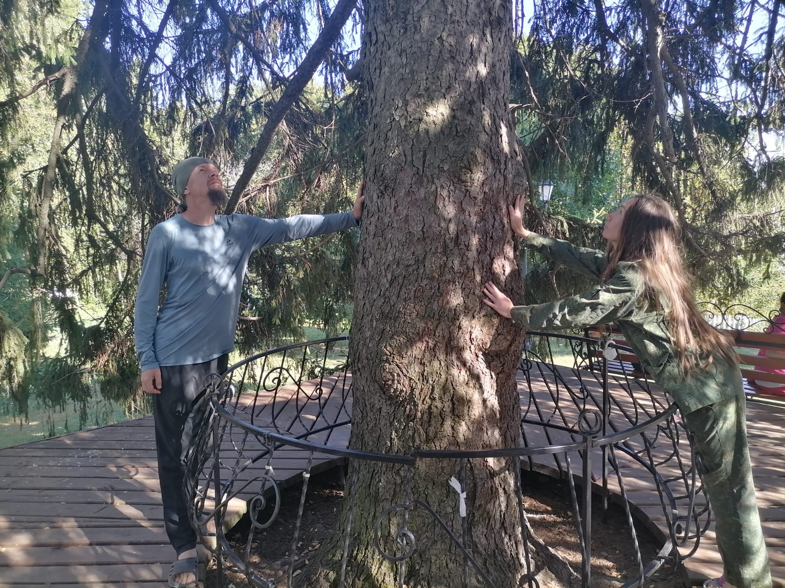 Посетители полюбовались на чудесный вид на Волгу, поразмышляли на «Скамье Раздумий» под 137-летней горно-алтайской елью высотой с двухэтажный дом, загадали желание, держась за ствол этого дерева, желая семейного благополучия.