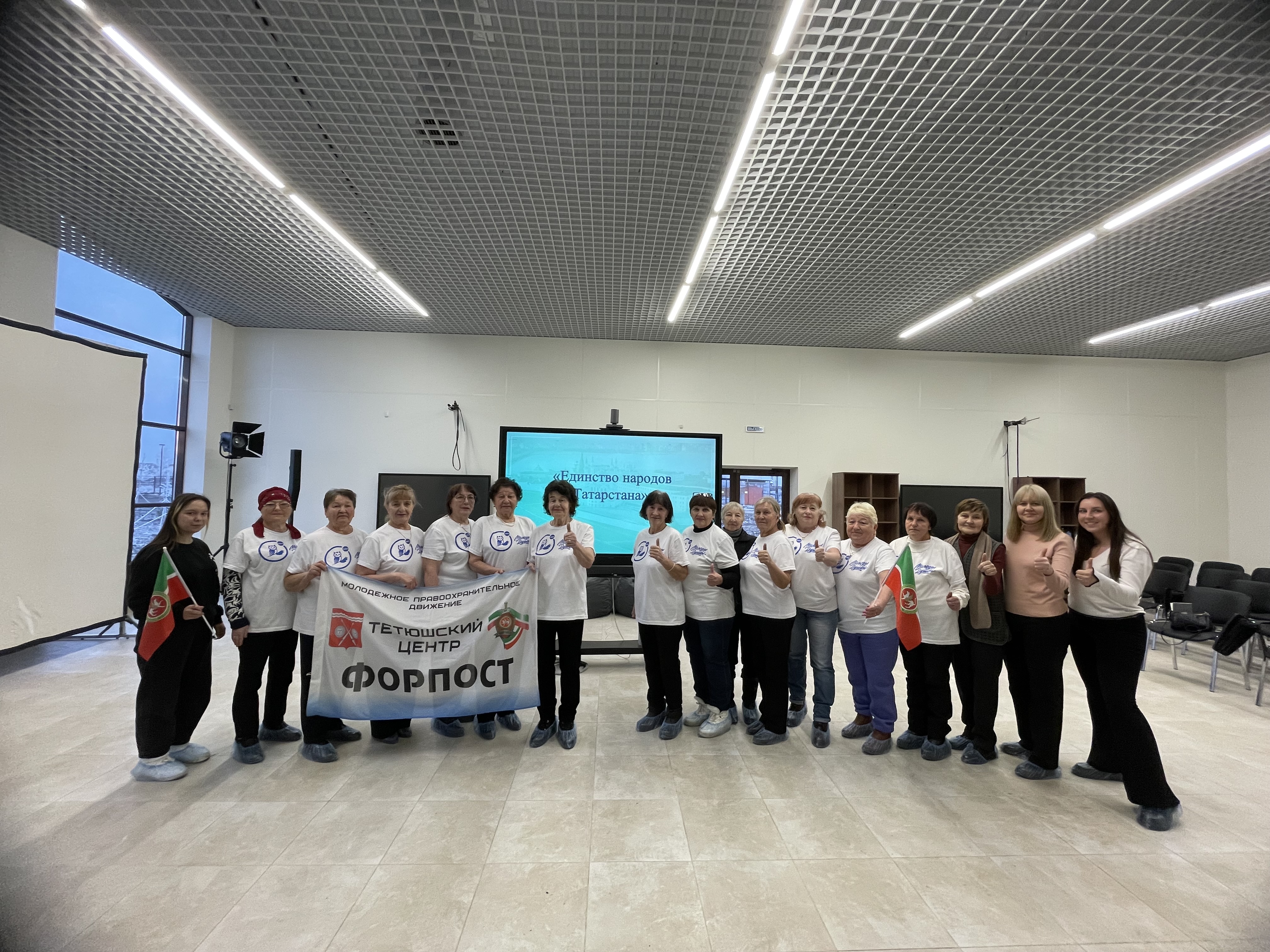 В честь празднования Дня Государственного флага Республики Татарстан на базе визит-центра «Тюбетей Tower» специалисты центра «Форпост» провели увлекательную викторину «Единство народов Татарстана» для активистов клуба «Молоды душой» и «серебряных» волонтеров КЦСОН «Тетюшское сияние». Участники столкнулись с интересными заданиями, касающимися истории, языка, народных праздников и других аспектов культуры нашего многонационального народа.