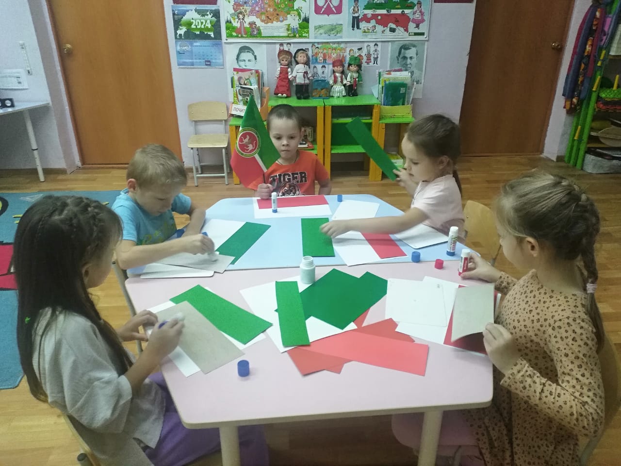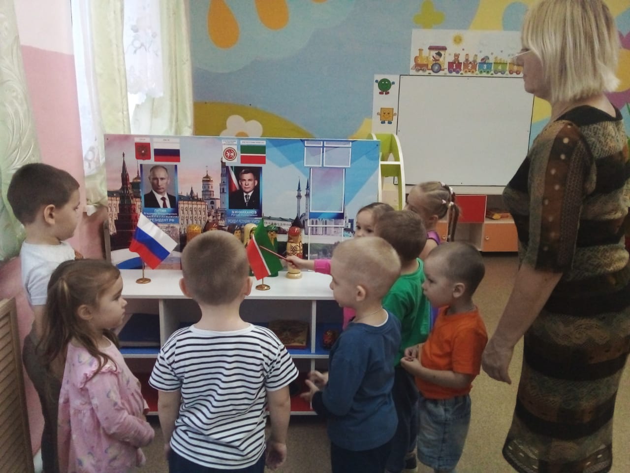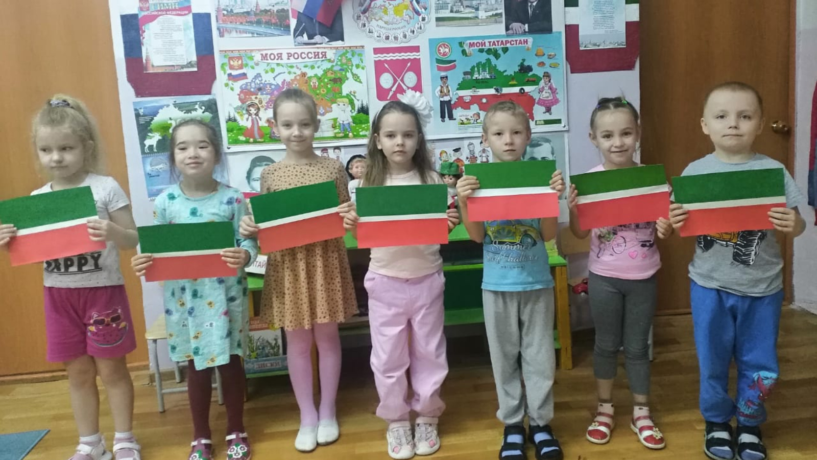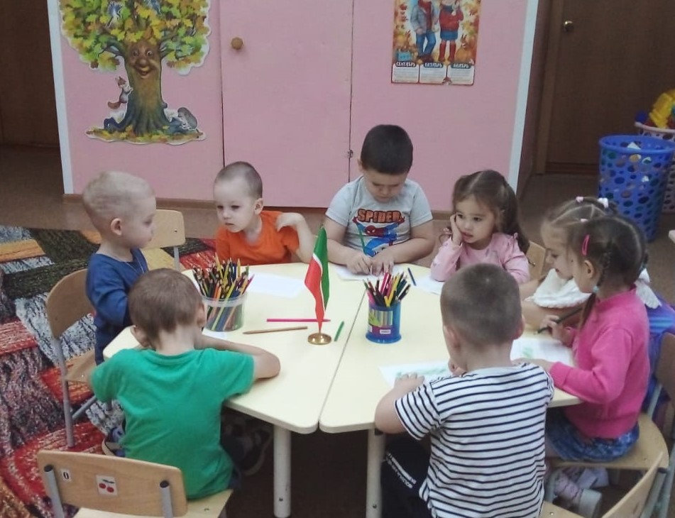 Приобщение детей к государственной символике – одна из приоритетных задач в патриотическом воспитании дошкольников. С целью формирования нравственно-патриотических качеств и воспитания у дошкольников любви к родине, в детскому саду «Малыш» традиционно проводятся мероприятия, посвящённые Дню флага Республики Татарстан. В группах были проведены беседы об истории флага, значении каждого цвета. Дети рисовали флаги, закрепляя последовательность цветовой гаммы.