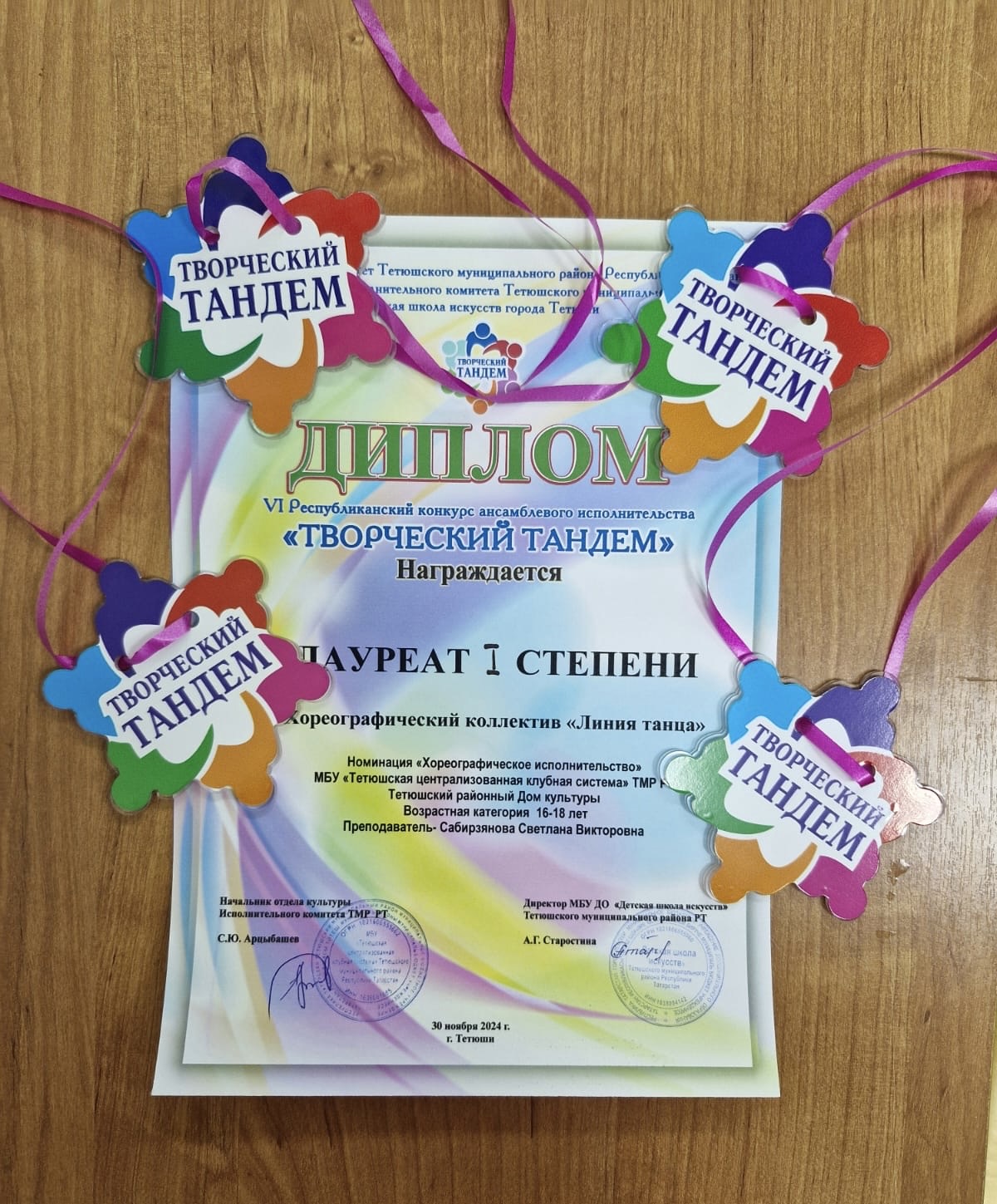 30 ноября хореографический коллектив "Линия танца" (Тетюшский РДК, руководитель Светлана Сабирзянова) принял участие в VI Республиканском конкурсе ансамблевого исполнительства "Творческий тандем", который состоялся на базе МБУ ДО "Детской школе искусств" г. Тетюши. Коллектив стал лауреатом I степени в номинации "Хореографическое исполнительство".