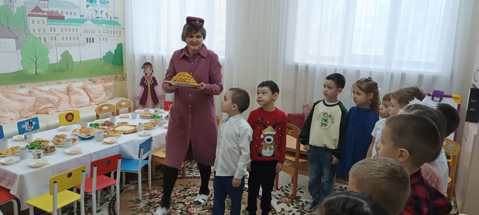 В рамках недели татарского языка педагог по обучению татарскому языку детского сада «Сказка» Абдурахманова А.В. организовала увлекательную игровую ситуацию – чаепитие” Тәмле” кафесында. Это событие стало отличной возможностью для дошкольников погрузиться в атмосферу татарской культуры и языка. Дошкольники практиковали разговорный татарский язык общаясь с педагогом и друг с другом в неформальной обстановке. Это позволило не только улучшить языковые навыки, но и лучше понять культуру и традиции татарского народа. Педагог подчеркнула важность таких мероприятий для повышения интереса к языку и укрепления его роли в повседневной жизни. В итоге, игра прошла в теплой и дружеской атмосфере, оставив у всех участников много положительных эмоций и ярких впечатлений.