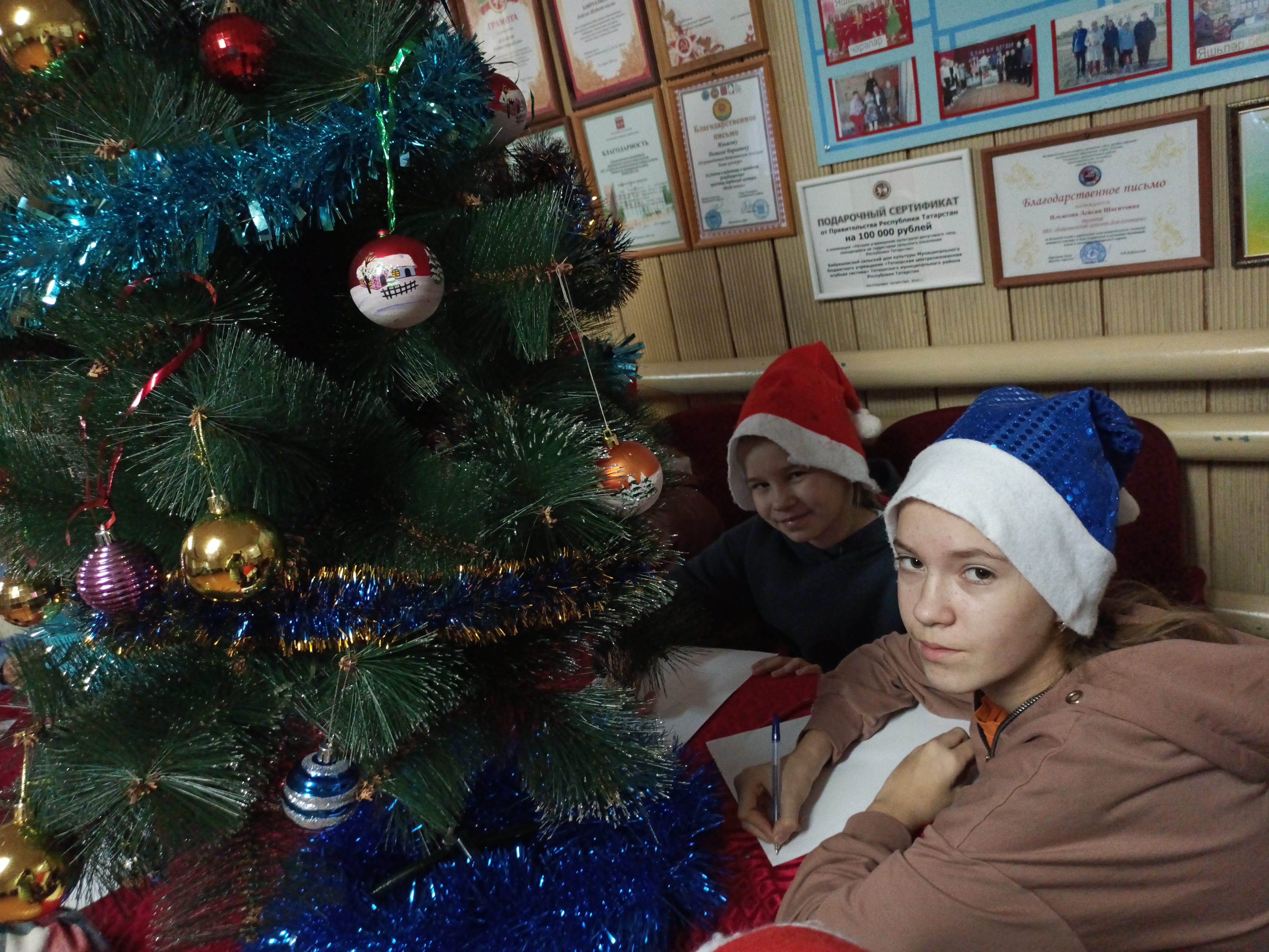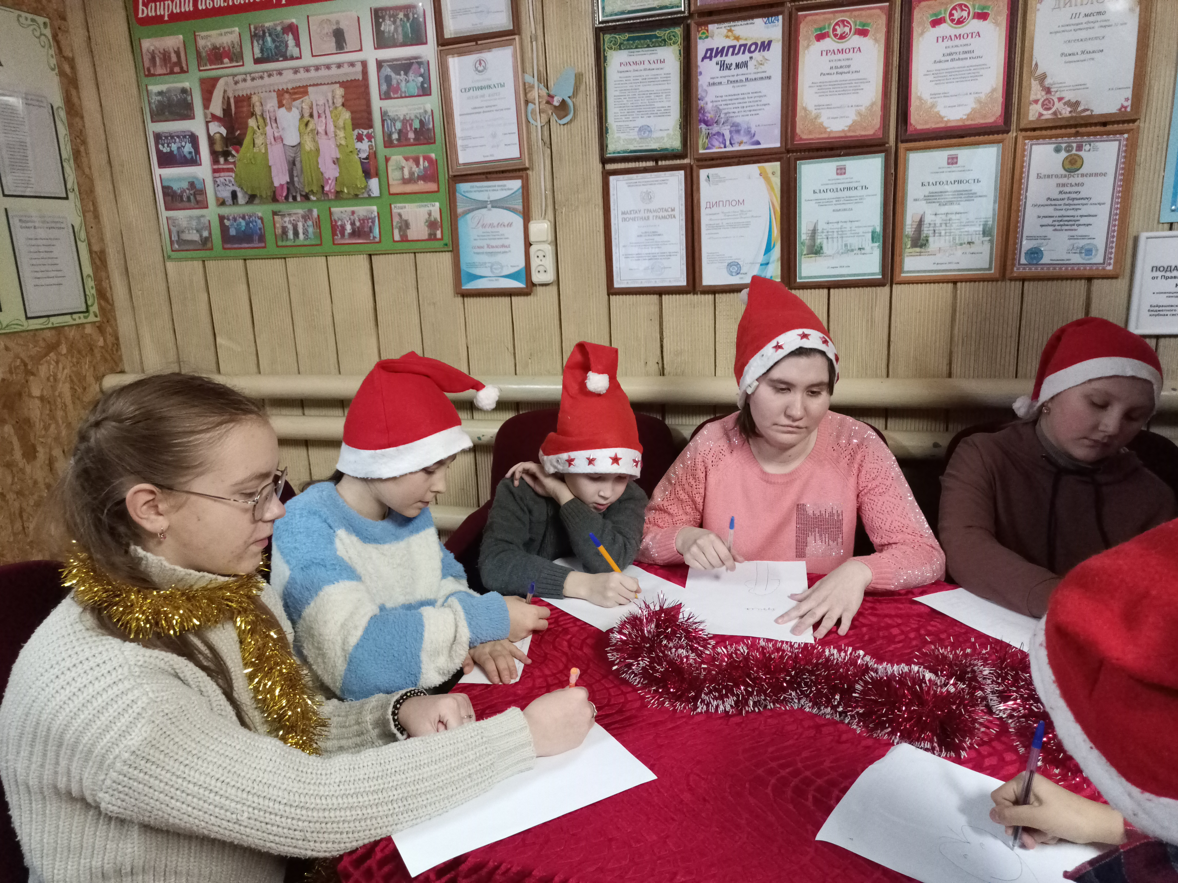 4 декабря культработники Байрашевского сельского Дома культуры организовали акцию "Письмо Деду Морозу", посвященную Дню написания письма Деду Морозу, а также в рамках республиканской акции "Марафон добрых дел". Они пригласили учащихся школы, чтобы написать письмо Деду Морозу. На мероприятие приняла участие и девушка с ОВЗ.Ребята украсили лесную красавицу, а затем с удовольствием принялись за работу. Желания были у всех разные, но все пришли к выводу, что нужно написать общее письмо Дедушке Морозу и поблагодарить его за то, что он каждый год исполняет наши желания.