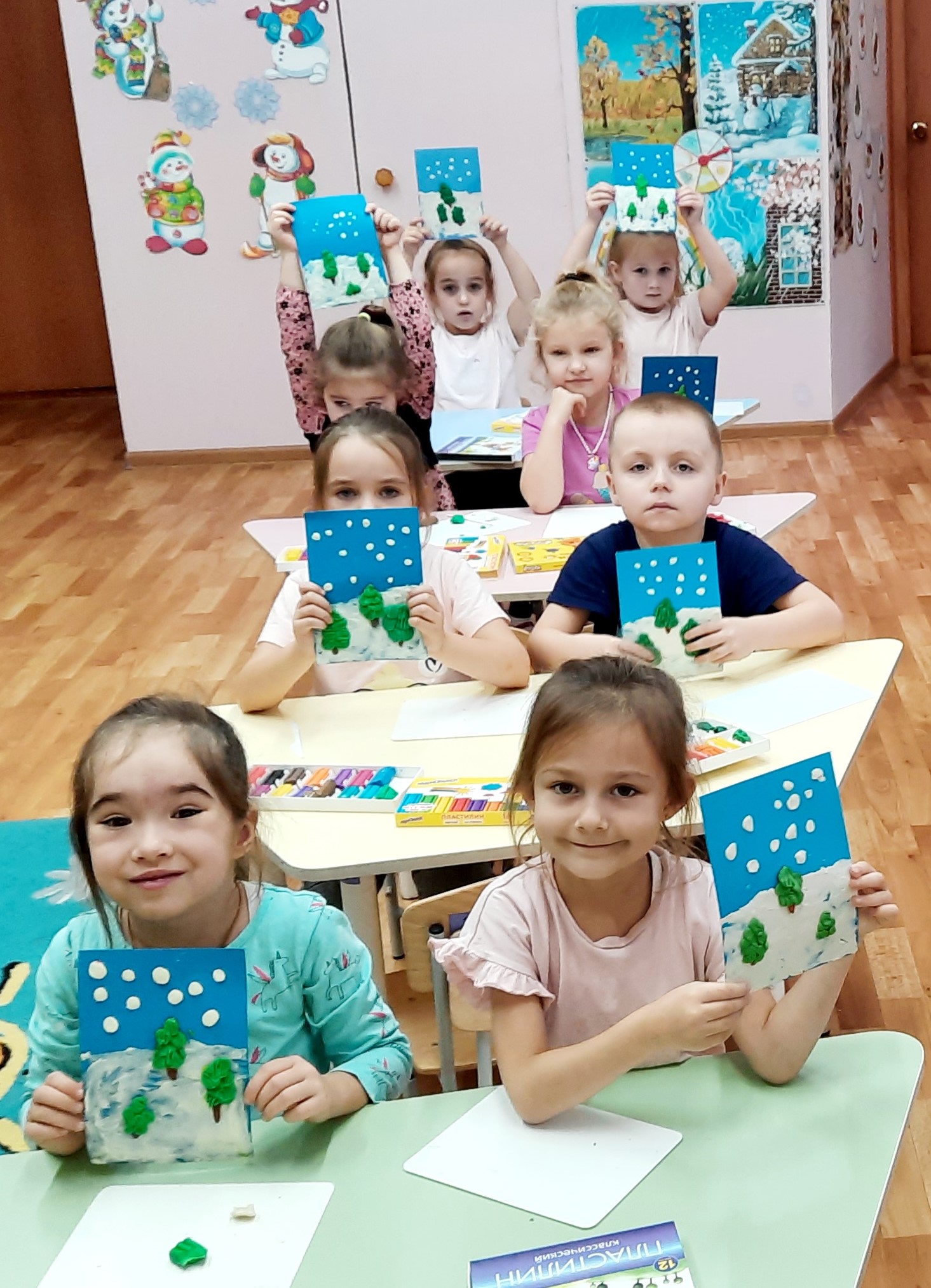 Зима… Какое чудесное время года! Природа словно отдыхает в сказочном сне. Зиму в народе называют Зима, Зимка, Зимочка, Зимушка, Зимонька, Седая Чародейка, Зима-волшебница. Зима действительно волшебница, она преображает мир, околдовывает его. Она способна рисовать белой и синей краской и их оттенками. Сегодня ребята детского сада «Малыш» запечатлели эту красоту в различной технике аппликации.