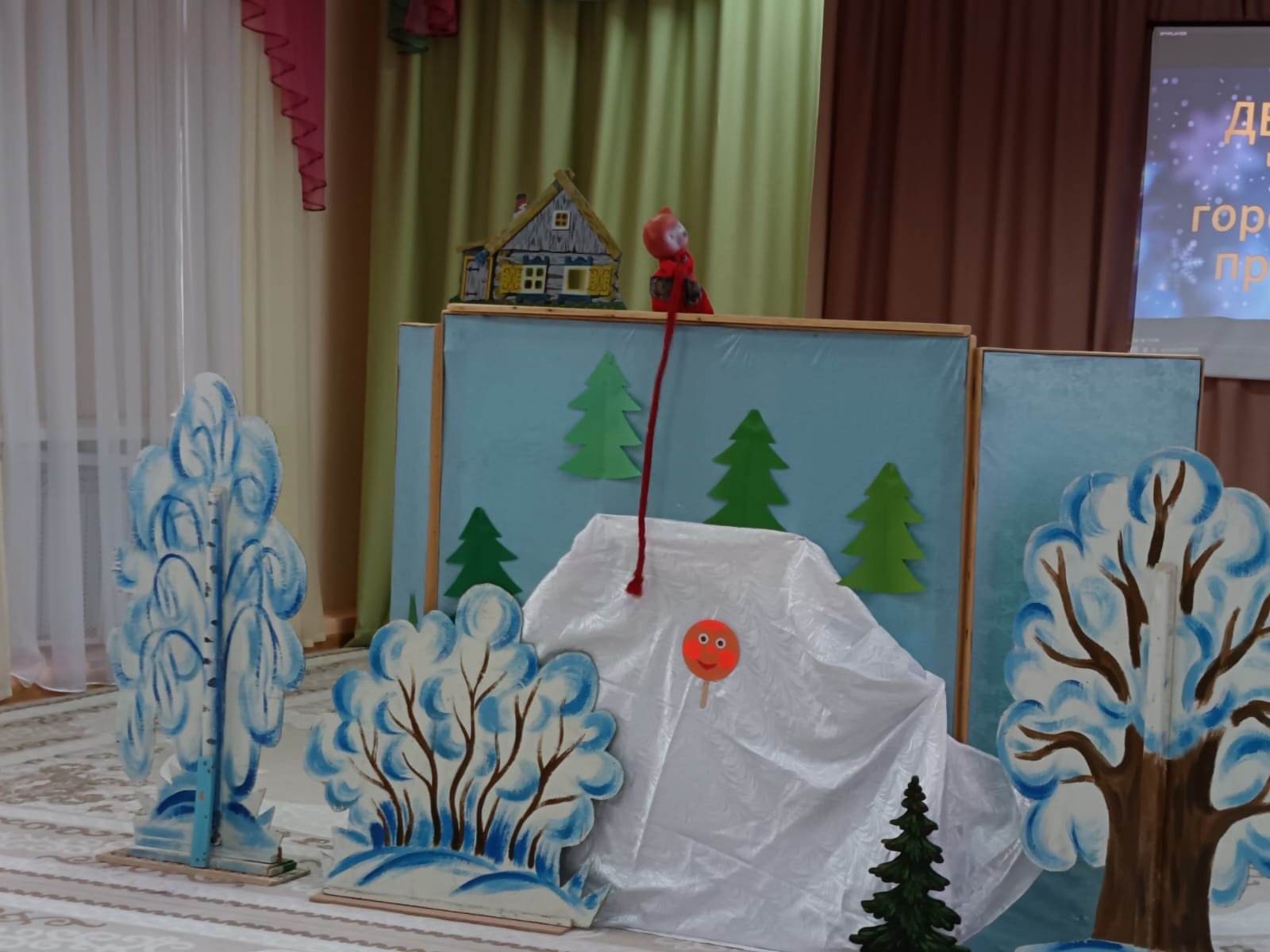 В рамках Единого дня безопасности педагоги детского сада показали воспитанникам кукольный театр "Буду бдителен на льду".