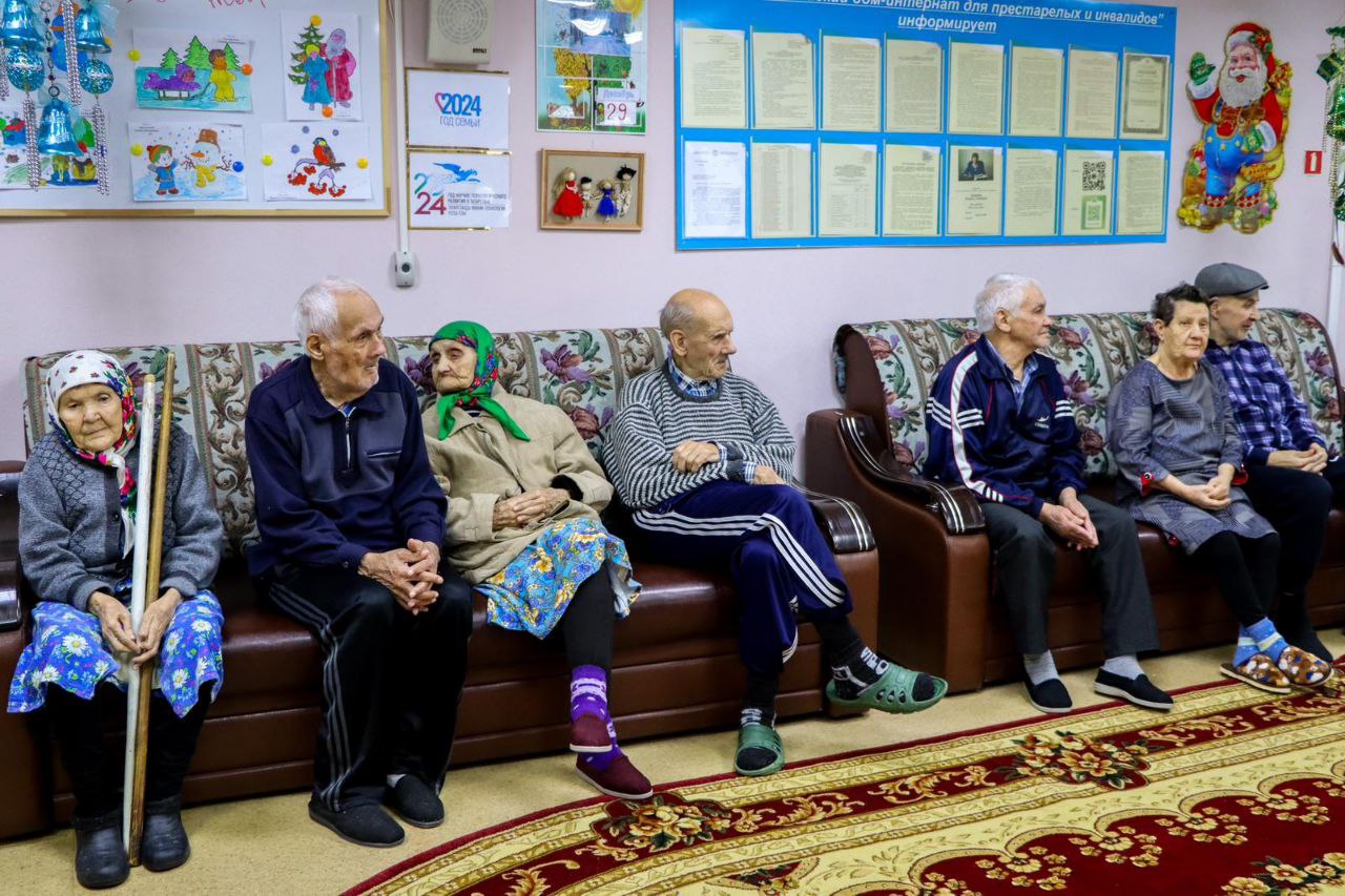 Глава Тетюшского муниципального района Рамис Сафиуллов совместно с заместителем руководителя Исполнительного комитета по социальным вопросам Натальей Николаевой и начальником отдела социального обслуживания в Тетюшском муниципальном районе Ольгой Колсановой поздравили жителей Тетюшского дома-интерната с наступающими праздниками.