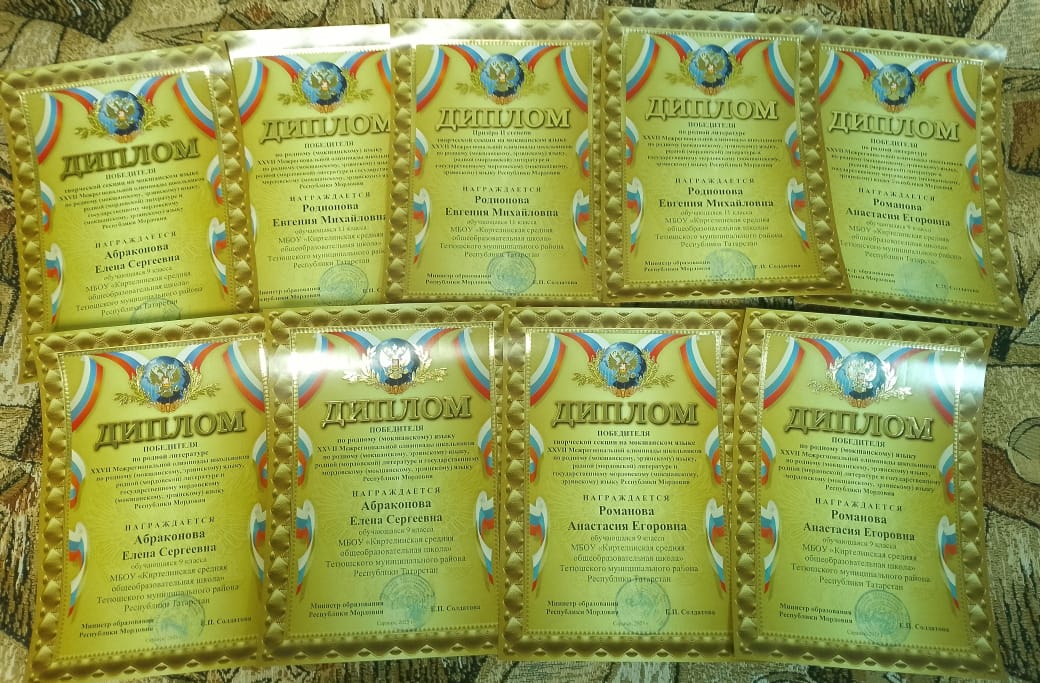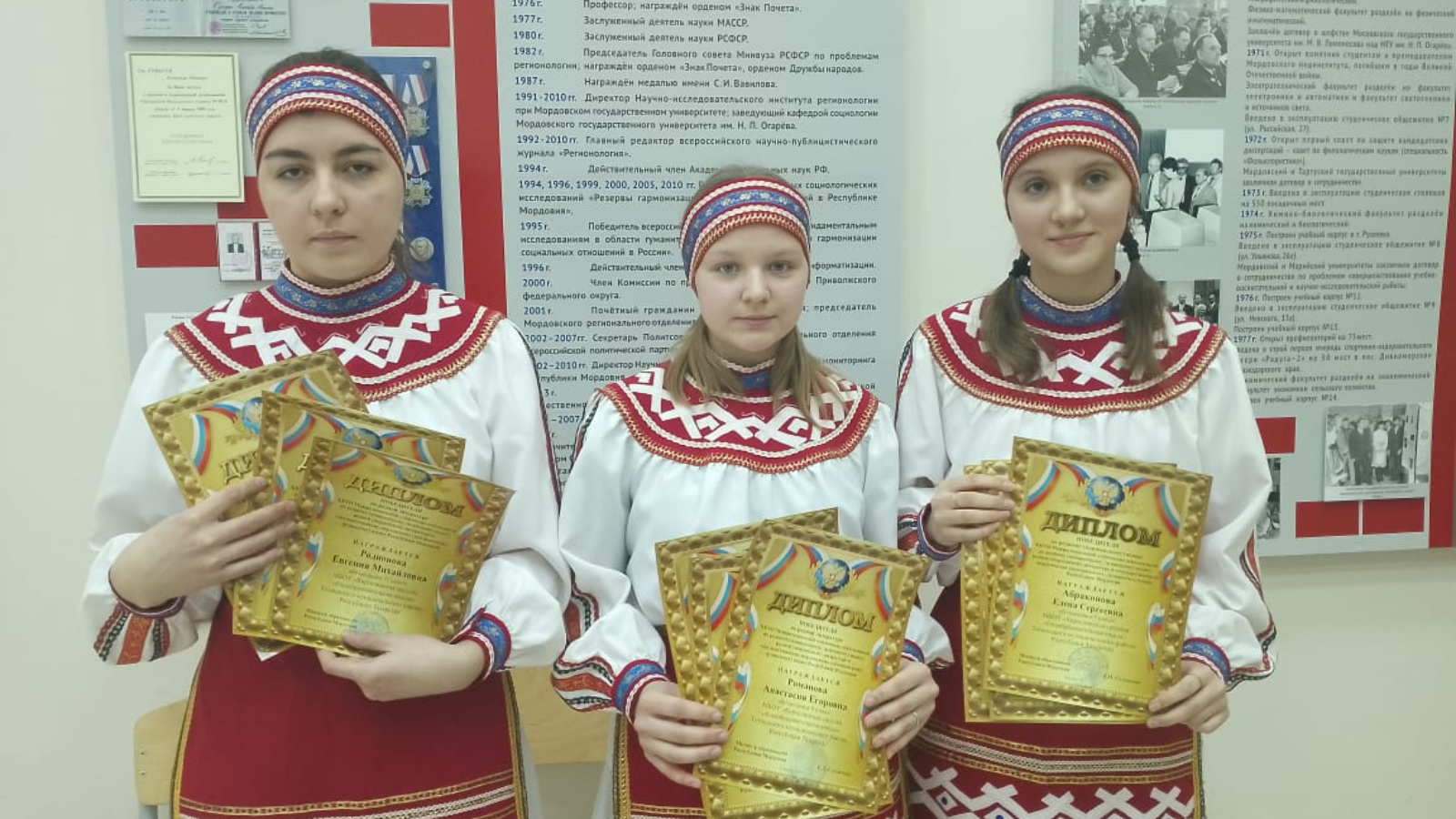 Представительницы школы – Романова Анастасия (9 класс), Абраконова Елена (9 класс) и Родионова Евгения (11 класс) – продемонстрировали глубокие знания и любовь к мордовской культуре, завоевав в общей сложности 8 победных мест и 1 призовое.