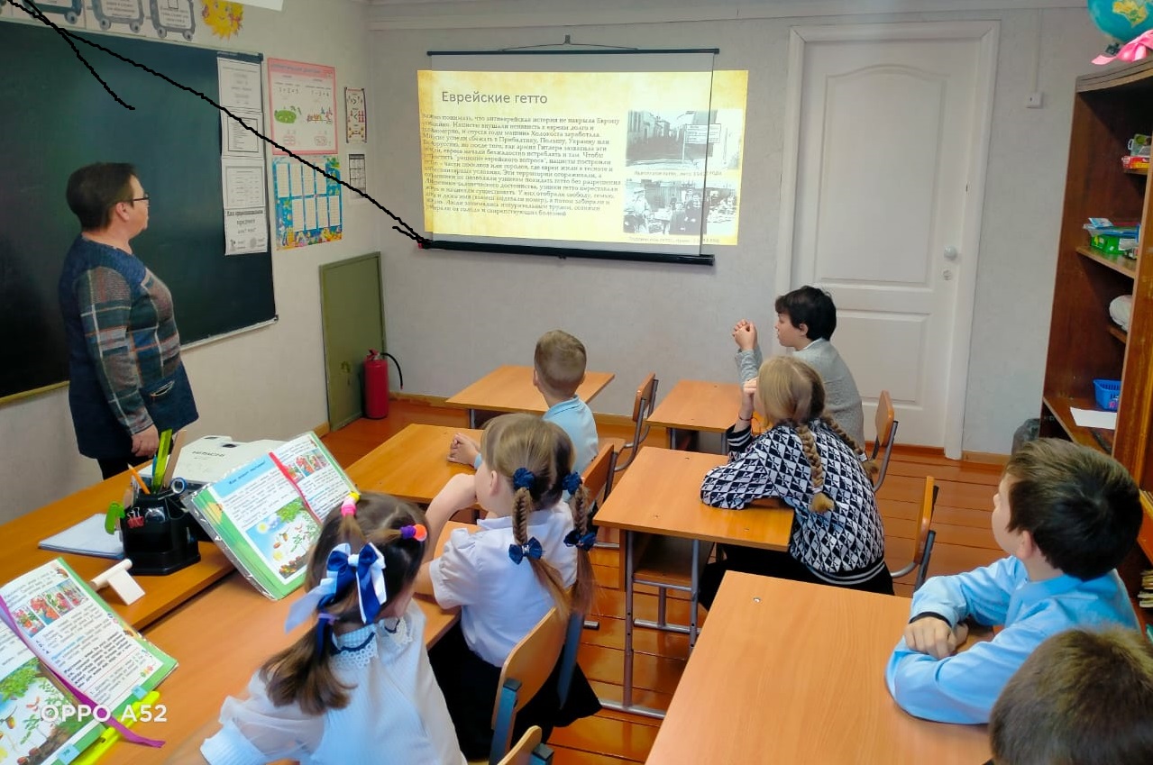 В Кильдюшевской поселенческой библиотеке состоялся урок – реквием «Холокост: память без срока давности». Прежде чем рассмотреть хронологию развития тех страшных событий, библиотекарь познакомила учащихся с понятием «холокост».