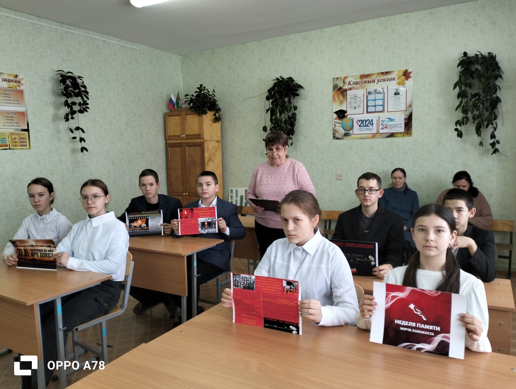 Библиотекарь Байрашевской поселенческой библиотеки для учащихся среднего и старшего школьного возраста провела час истории «Памяти жертв Холокоста».