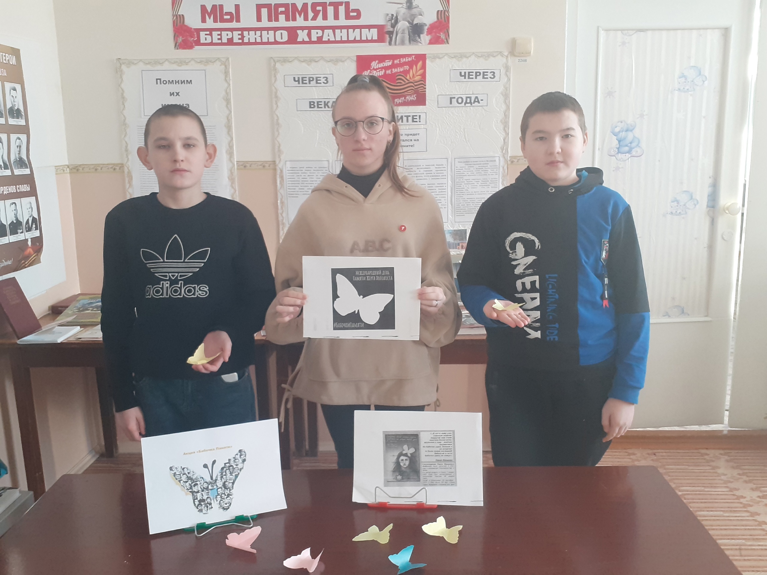 В Богдашкинской поселенческой библиотеке прошла акция «Бабочки памяти», в ходе которой ребята сделали ярких бабочек - символ счастья, свободы, радости, то есть всего того, чего были лишены дети, находящиеся в гетто и в лагерях смерти.