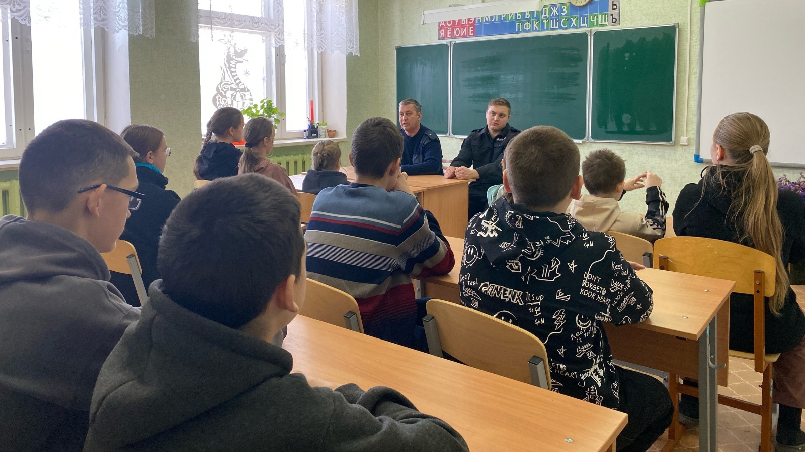 С целью профилактики преступности в молодёжной среде, а также других правонарушений и преступлений, совершаемых несовершеннолетними, была организована встреча со старшим инспектором ПДН отдела МВД России поТетюшскому району Баландиным В.А. и участковым уполномоченным полиции Кирилловым С.И.. В ходе беседы Вячеслав Андреевич разъяснил, с каких лет наступает уголовная ответственность и какие наказания применяются за совершение преступлений. Инспектор по делам несовершеннолетних дал ряд советов о том, как не стать жертвой преступления, куда обратиться и что предпринять в случае опасности. Семён Игоревич настоятельно рекомендовал соблюдать правила поведения на улице, в общественных местах, местах массового отдыха, не забывать о соблюдении комендантского часа. Также напомнили школьникам о вреде электронных сигарет, употребления спиртных напитков и табака. Объяснили, чем опасны эти пагубные привычки, а также рассказали о мерах административного и уголовного наказания за совершение противоправных деяний. Кроме этого, была затронута тема "Безопасный интернет", так как тема безопасности детей в Интернет – очень важная и актуальная. В завершении беседы пожелали ребятам вести здоровый образ жизни, быть внимательными и не забывать о правилах безопасности.