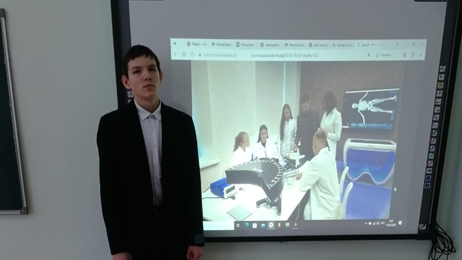 В ходе занятия учащиеся просмотрели и обсудили видеоролик «Технологическое предпринимательство», видеоролик-интервью, выполнили интерактивное задание.
