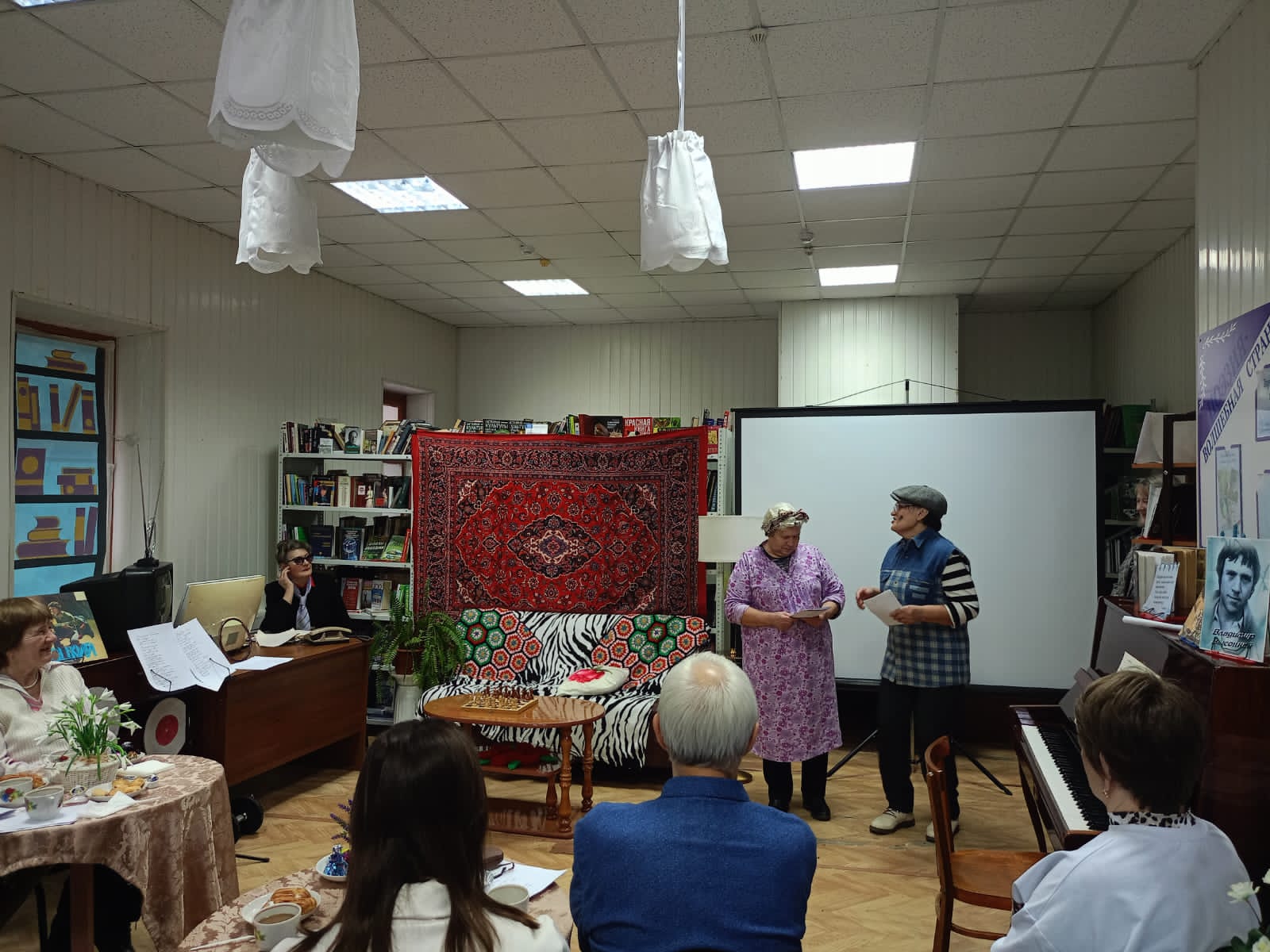 Для слушателей Университета третьего возраста курса «Просвещение культуры» сотрудниками Центральной библиотеки было проведено литературное кафе «Своя колея», посвященное жизни и творчеству поэта, актера Владимира Высоцкого. В ходе мероприятия звучали замечательные песни на стихи поэта в исполнении Александра и Веры Скурихиных, присутствующие читали свои любимые стихотворения. Очень интересно были разыграны сценки «Диалог у телевизора», «Инструкция перед поездкой за рубеж», «Борьба за шахматную корону».