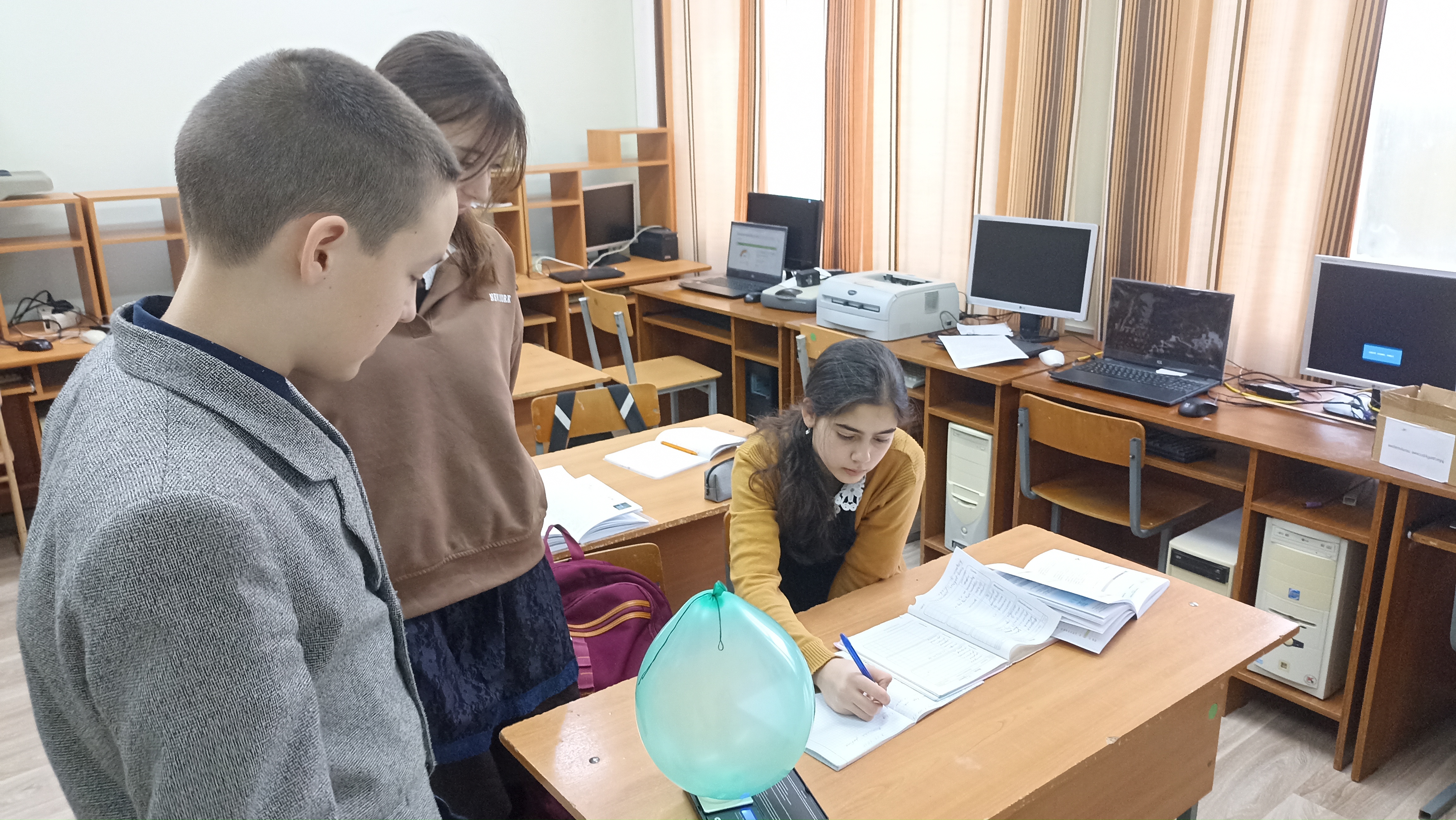 В 7 классе при изучении темы «Вес воздуха. Атмосферное давление» учащиеся с помощью цифровых весов смогли измерить массу воздуха, находящегося внутри воздушного шарика, а также ощутить силу атмосферного давления, которая не позволяла им разъединить Магдебургские полушария, из которых откачали воздух, хотя ученики очень старались. Одна девочка, догадавшись отрыть кран и впустив воздух, смогла разорвать Магдебургские полушария без особых усилий. Опыты заняли по времени не больше пяти минут в начале урока, но заинтересованные ими учащиеся с интересом и плодотворно работали весь оставшийся урок.