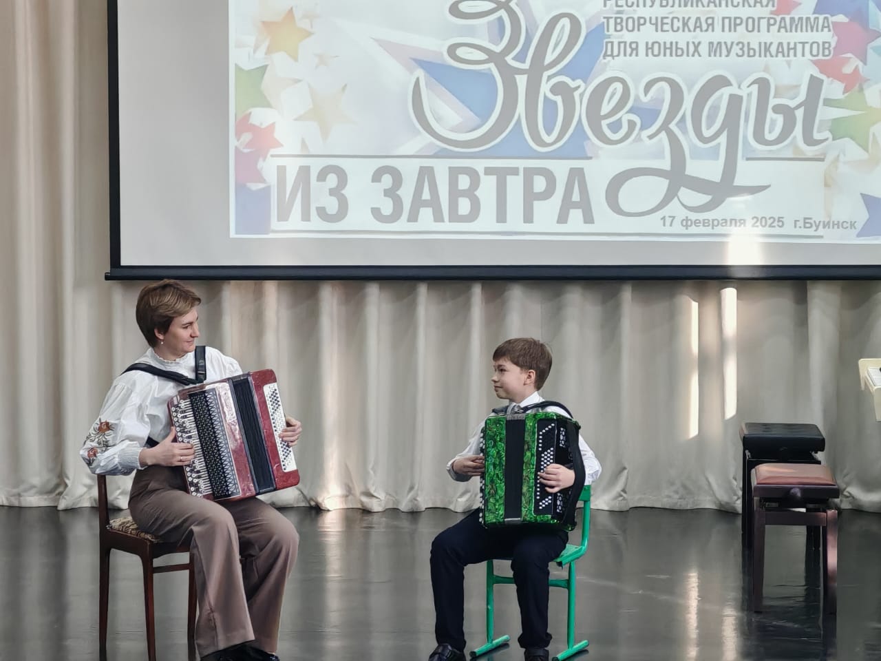 17 февраля учащиеся и преподаватели Детской школы искусств приняли участие в Зональном отборочном этапе Республиканской творческой программы для юных музыкантов "Звёзды из завтра- 2025, посвященный 80- летию Победы".