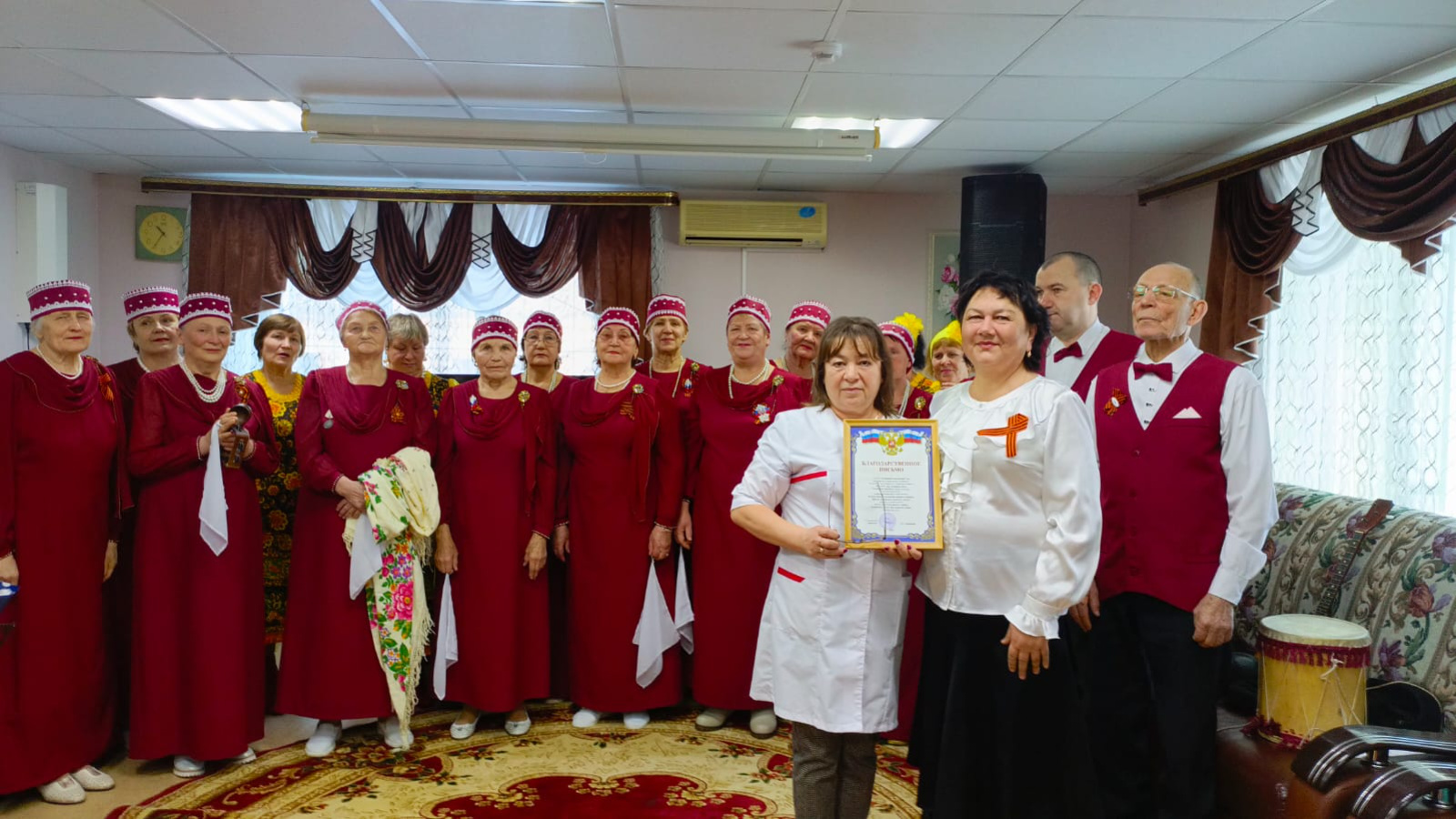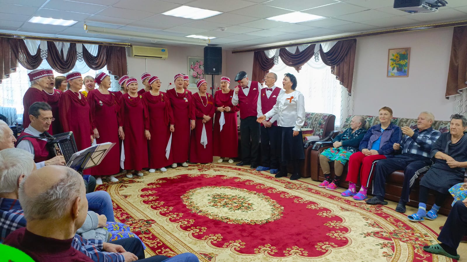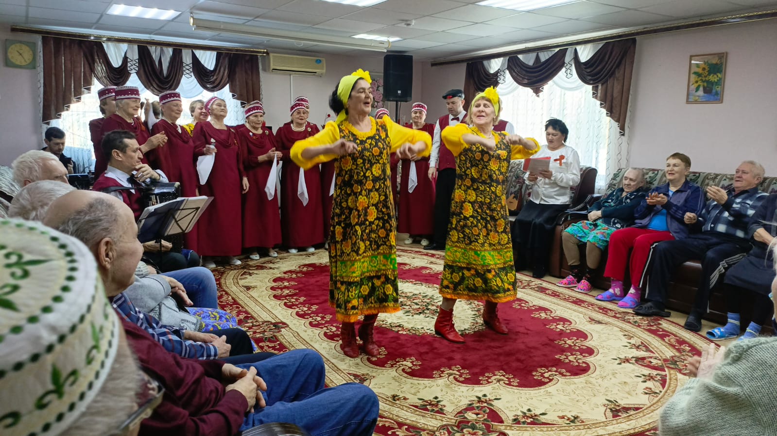 В концертной программе в исполнении хора звучали патриотические, русские народные песни, задорные частушки, народные танцы. Жители интерната благодарили за восхитительный концерт аплодисментами, который стал для них праздником души. Директор ГАУСО «Тетюшский дом-интернат» Людмила Самаркина вручила участникам хора благодарственное письмо, пожелав им крепкого здоровья и творческих успехов.