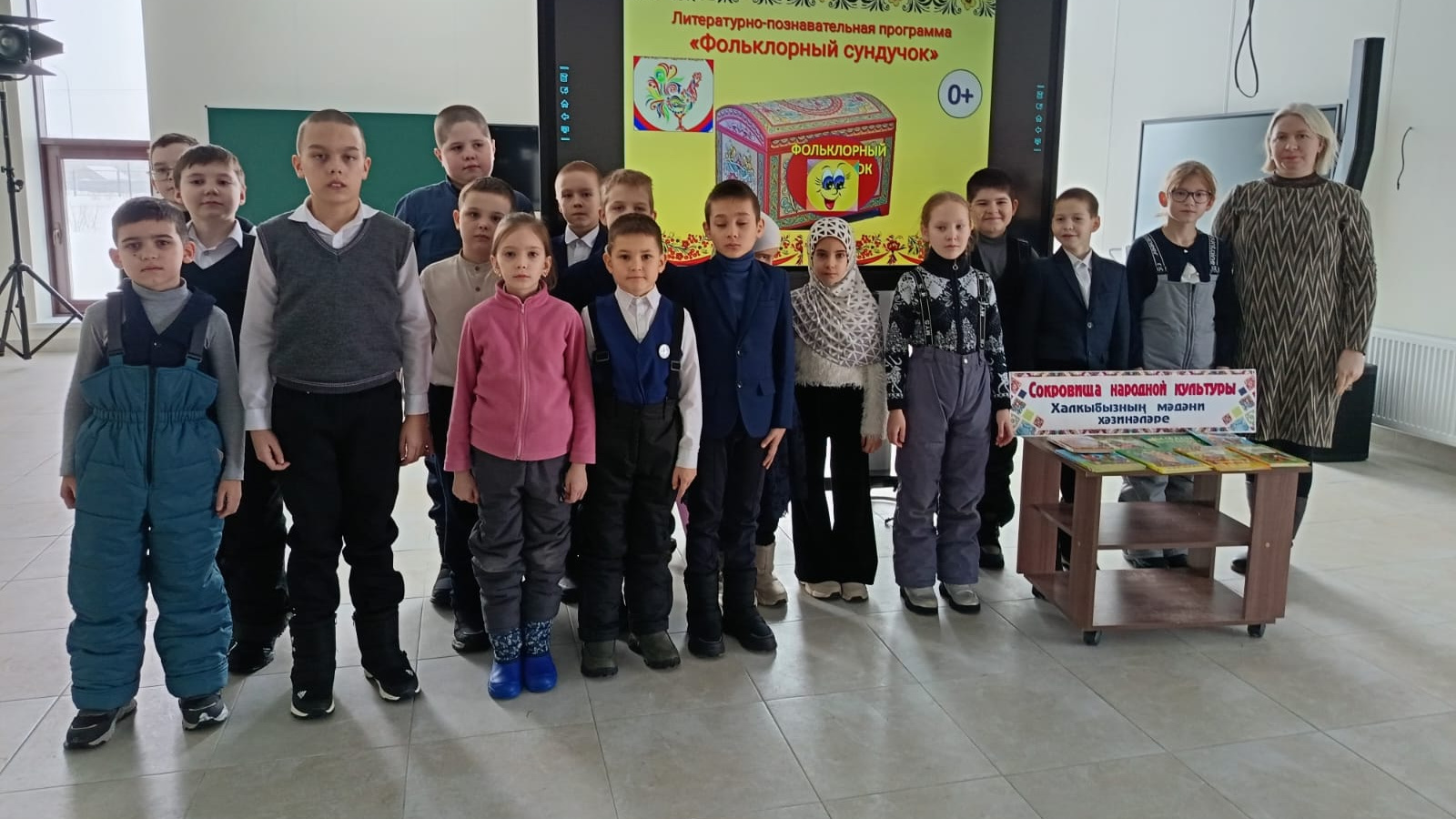 19 февраля в рамках Всероссийской акции «Наши истоки. Читаем фольклор» в визит-центре «Тюбетей Tower» г. Тетюши состоялась литературно-познавательная программа «Фольклорный сундучок» для учащихся 1-4 классов МБОУ «Тетюшская татарская СОШ».
