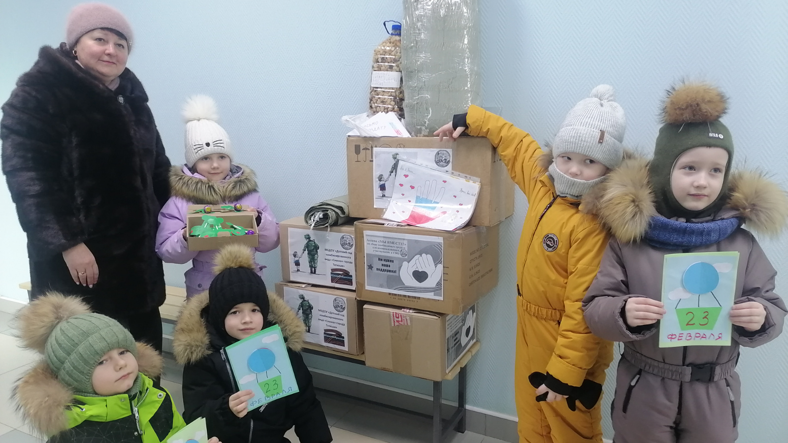 В преддверии Дня Защитника Отечества в детском саду «Сказка» прошла акция по сбору гуманитарной помощи для участников СВО «Мы вместе! СВОих не бросаем!».