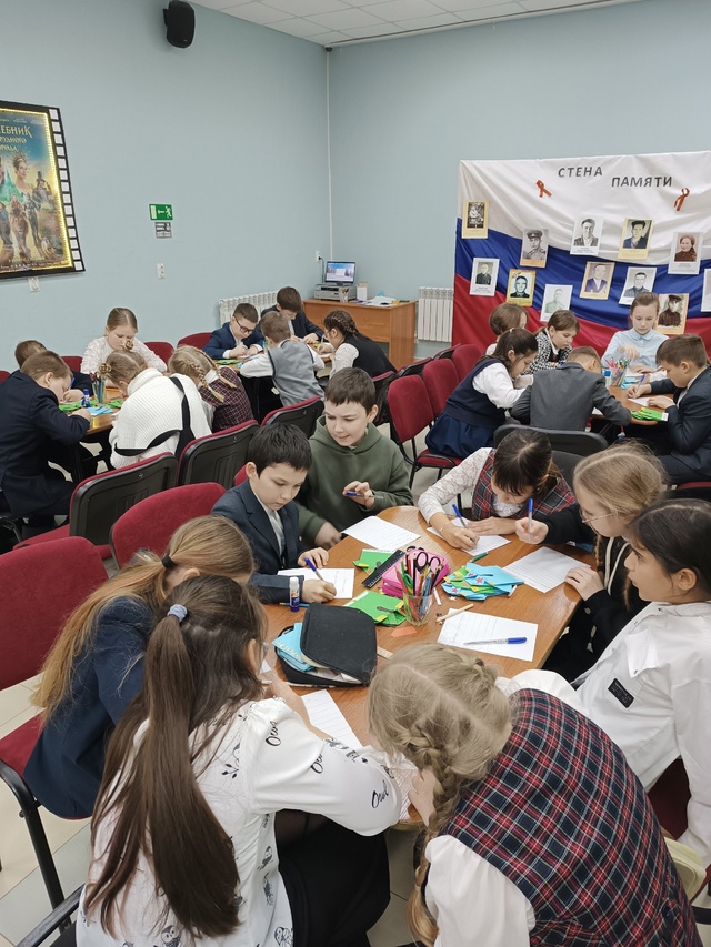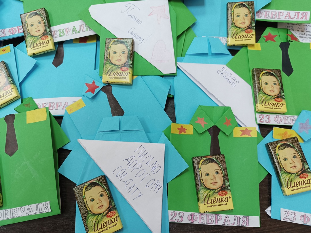 На мастер-классе мы с детьми создали уникальную открытку, чтобы порадовать наших солдат, находящихся в зоне СВО. К открытке мы приложили трогательные письма детей, которые отправятся нашим ребятам с теплыми словами и поздравлениями, а работники КРЦ приложили к ним еще и сладкий подарок.