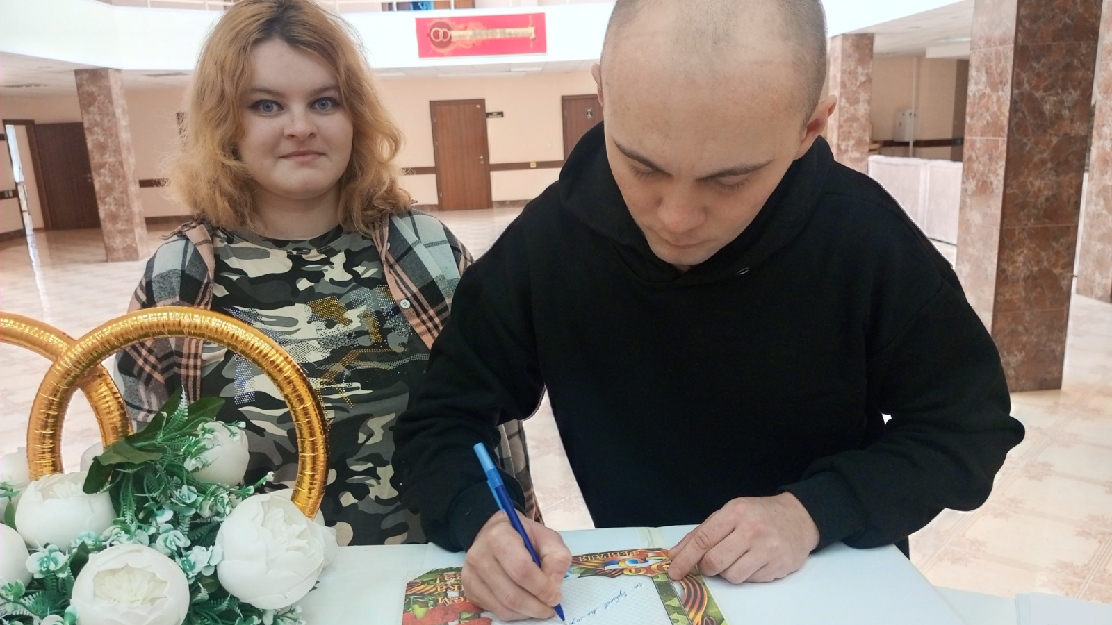 Молодожены зарегистрировали свой брак скромно, не в торжественной обстановке и в этот знаменательный для них день, в своей открытке, они выразили чувство благодарности за мужество и храбрость наших участников СВО, а также пожелание скорейшего возвращения домой с победой»