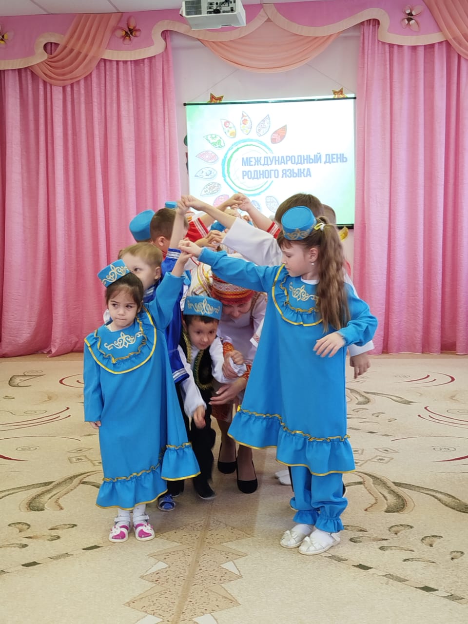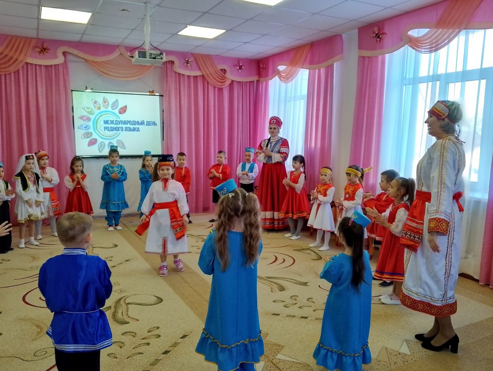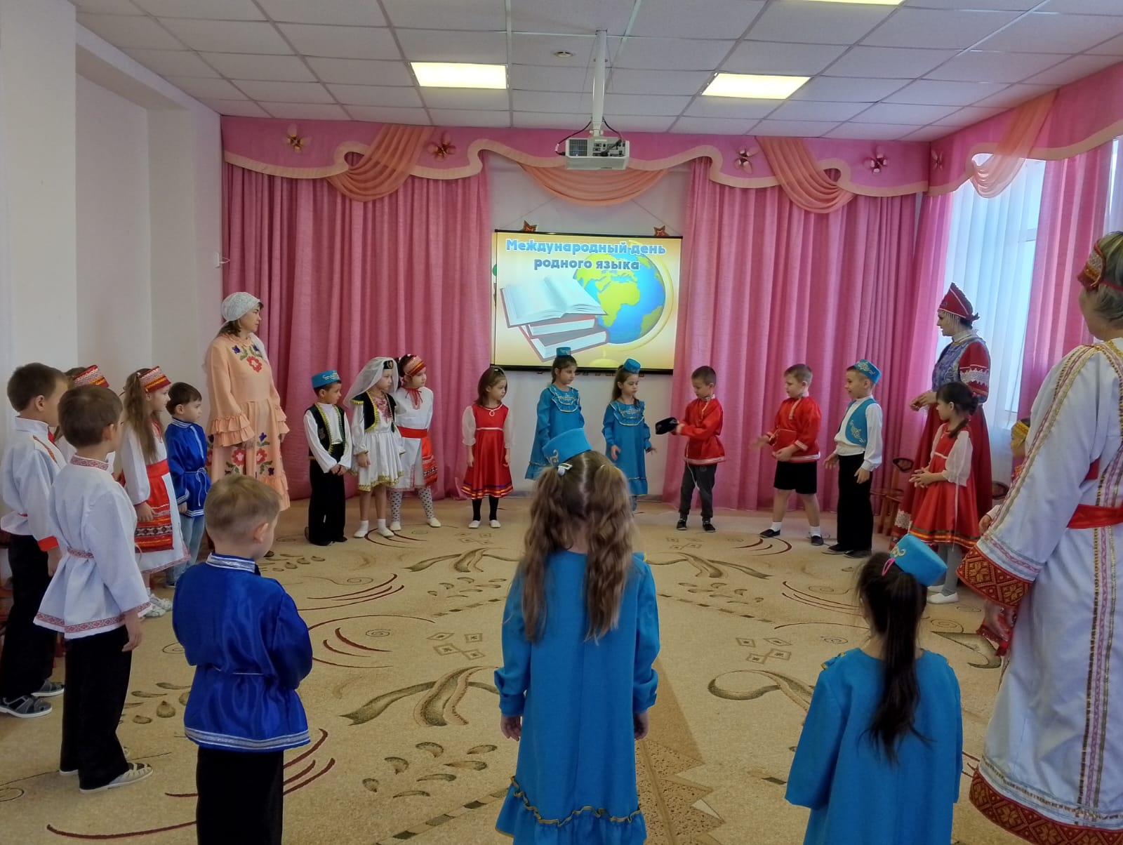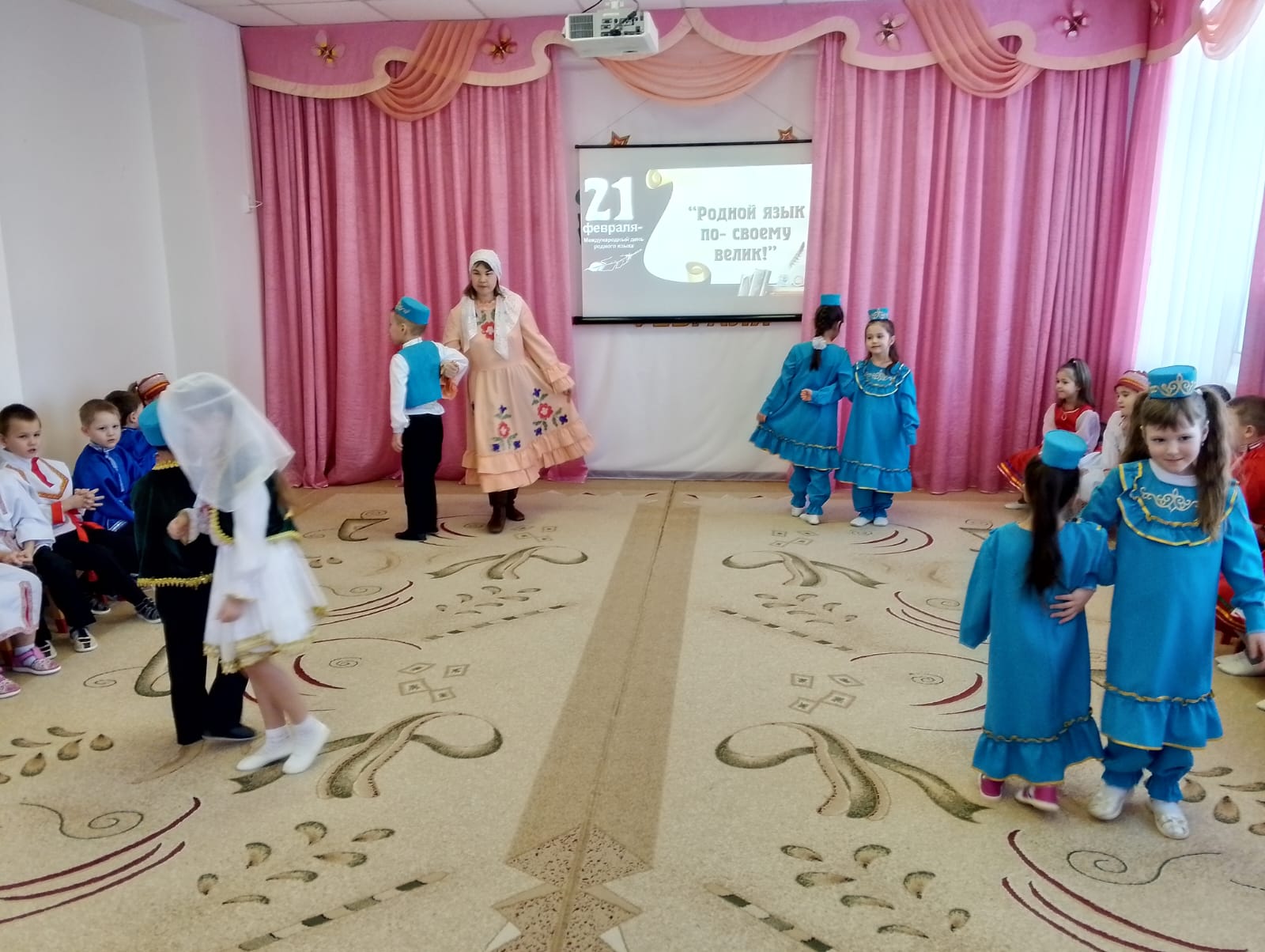 В старших группах проведены тематические беседы, в рамках которых педагоги ввели понятие «родной язык», раскрыли его этимологию и акцентировали внимание на его значимости в жизни каждого человека. Мероприятие завершилось праздником «Родной язык», с народными играми, хороводом, песнями, танцами и чтением стихов на родном языке.