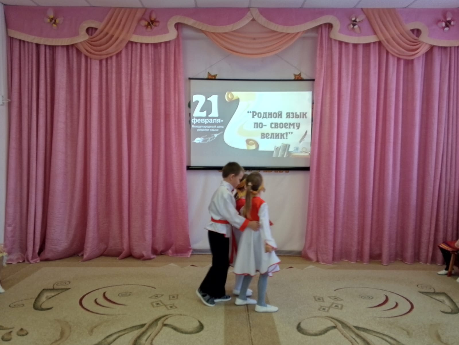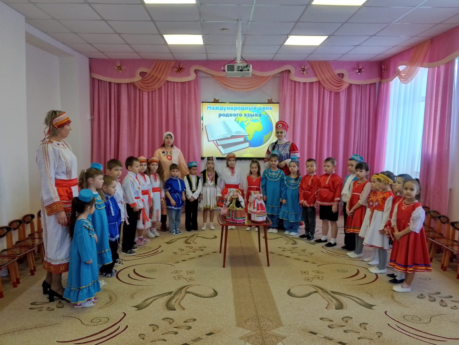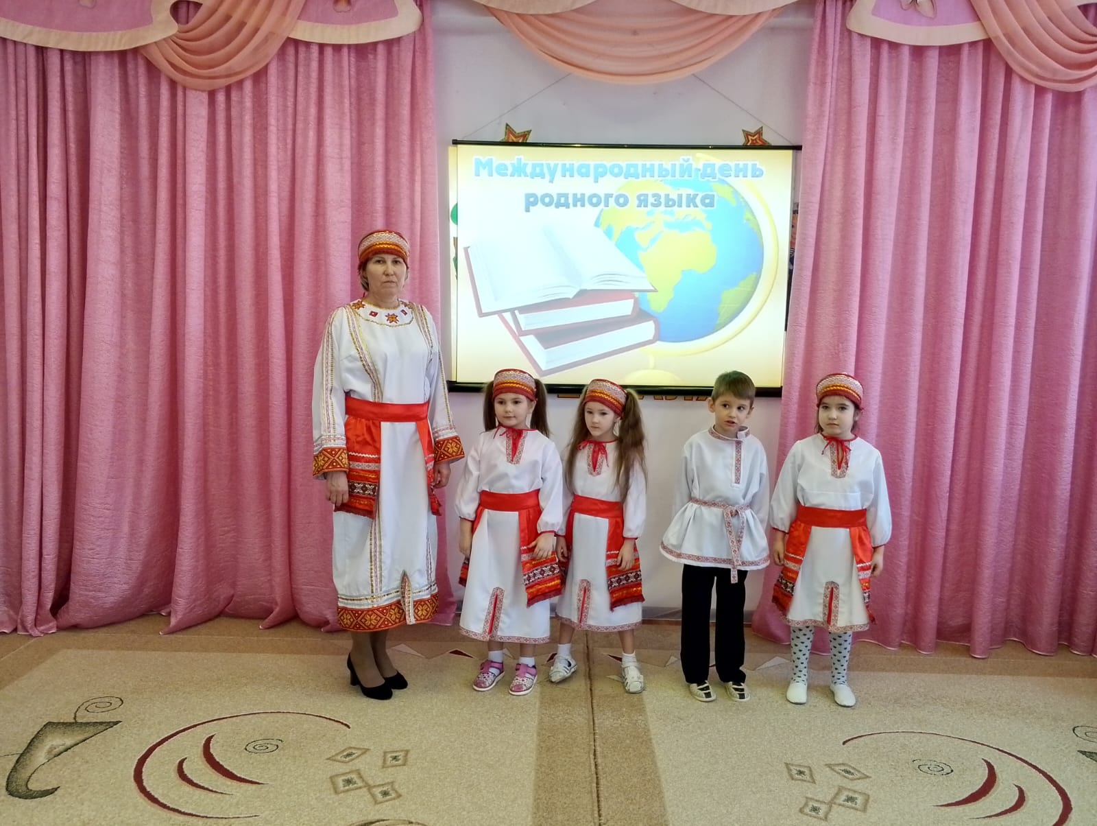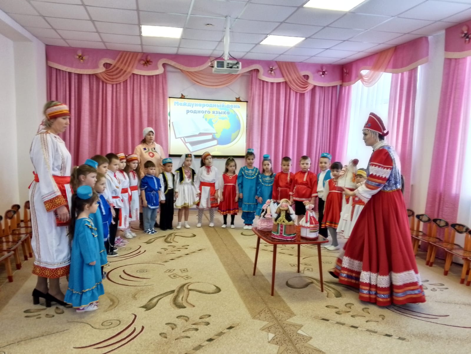 В старших группах проведены тематические беседы, в рамках которых педагоги ввели понятие «родной язык», раскрыли его этимологию и акцентировали внимание на его значимости в жизни каждого человека. Мероприятие завершилось праздником «Родной язык», с народными играми, хороводом, песнями, танцами и чтением стихов на родном языке.